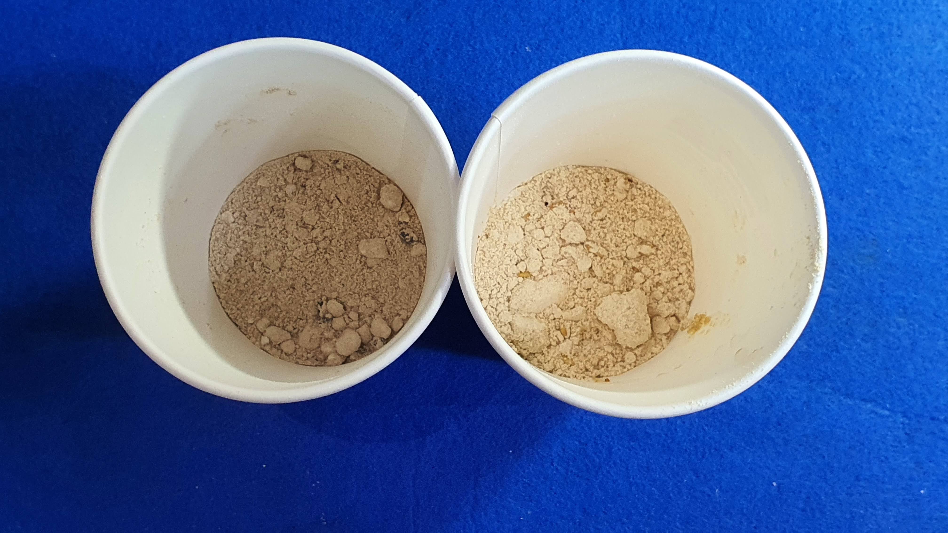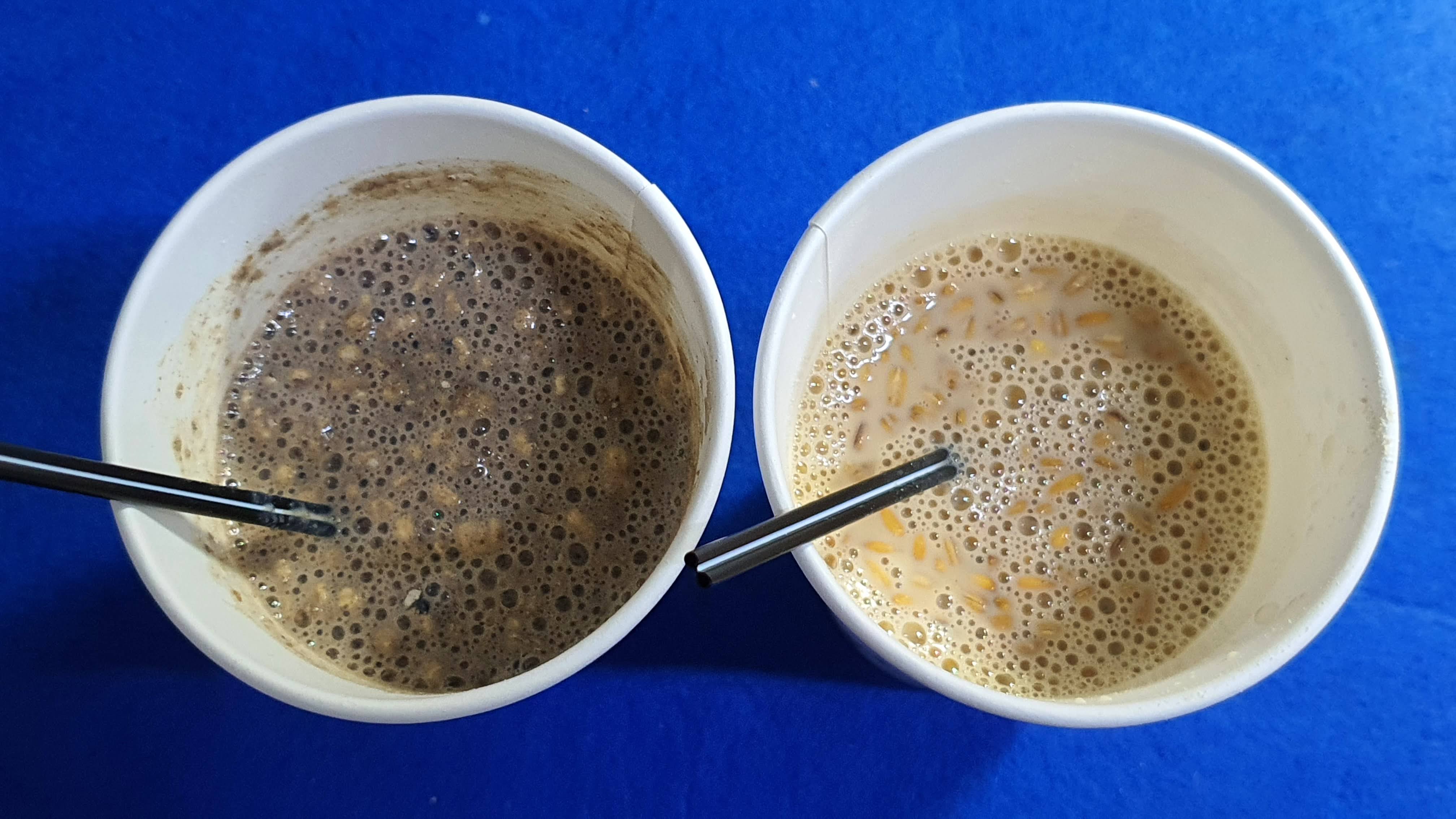 컵에 귀리 쉐이크와 서리태 쉐이크를 넣었습니다.