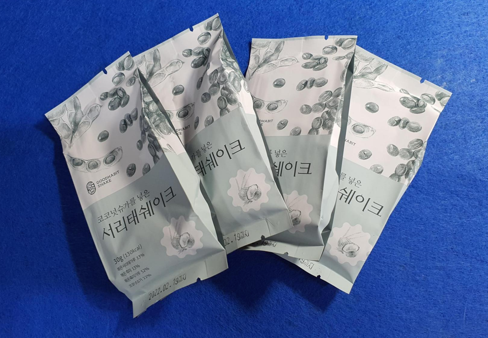 귀리 쉐이크와 서리태 쉐이크의 한 박스 안에는 총 4포가 들어 있어요.