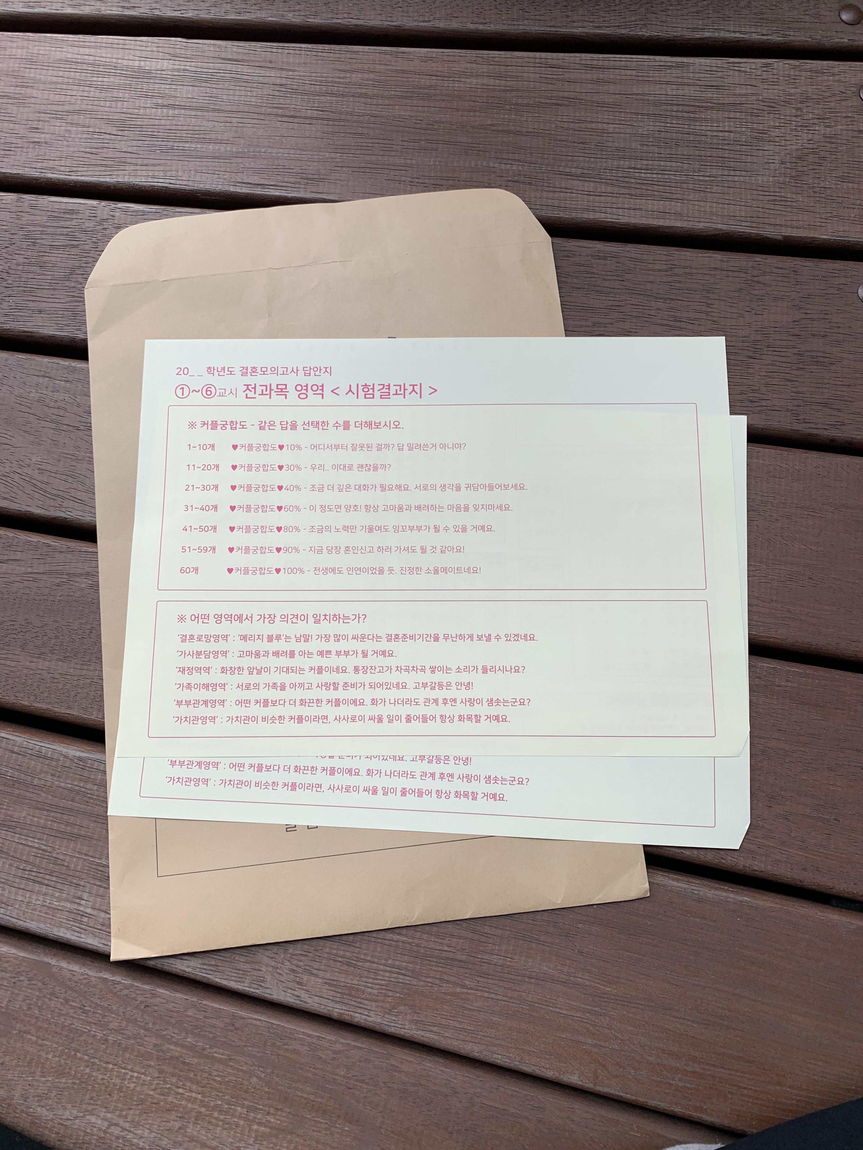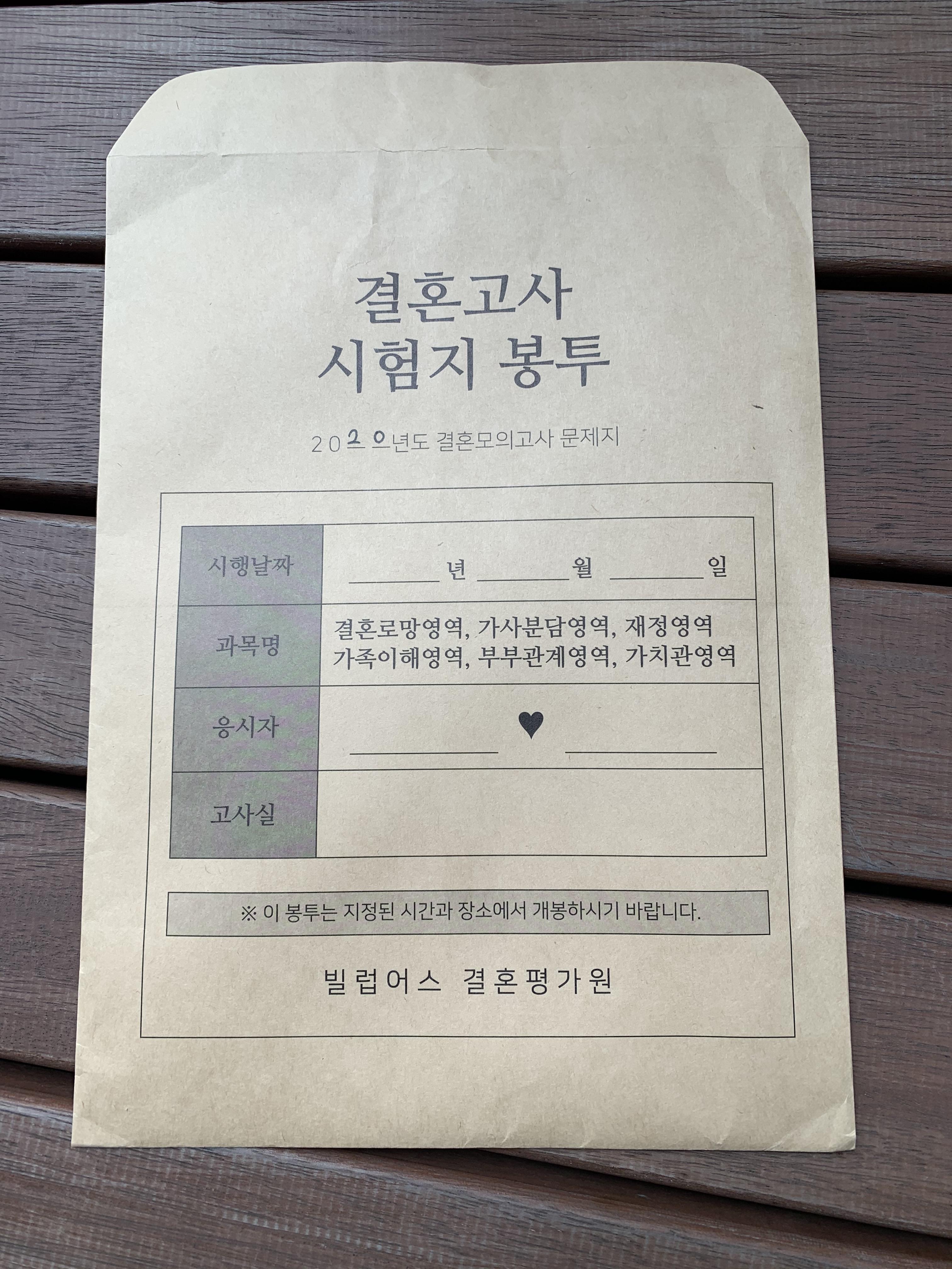 재미로 보는 시험~ '결혼 고사', 재미로 시작했지만 미처 알지 못했던 서로를 조금 더 알 수 있는 좋은 시험이었어요.