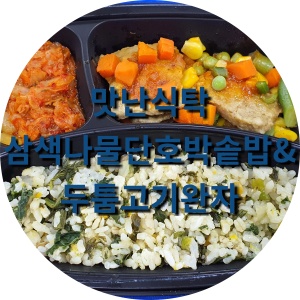 이번에는 맛난 식탁에서 나오는 건강한 식단인 삼색나물 단호박 솥밥 & 두툼 고기완자를 먹게 되었어요^^