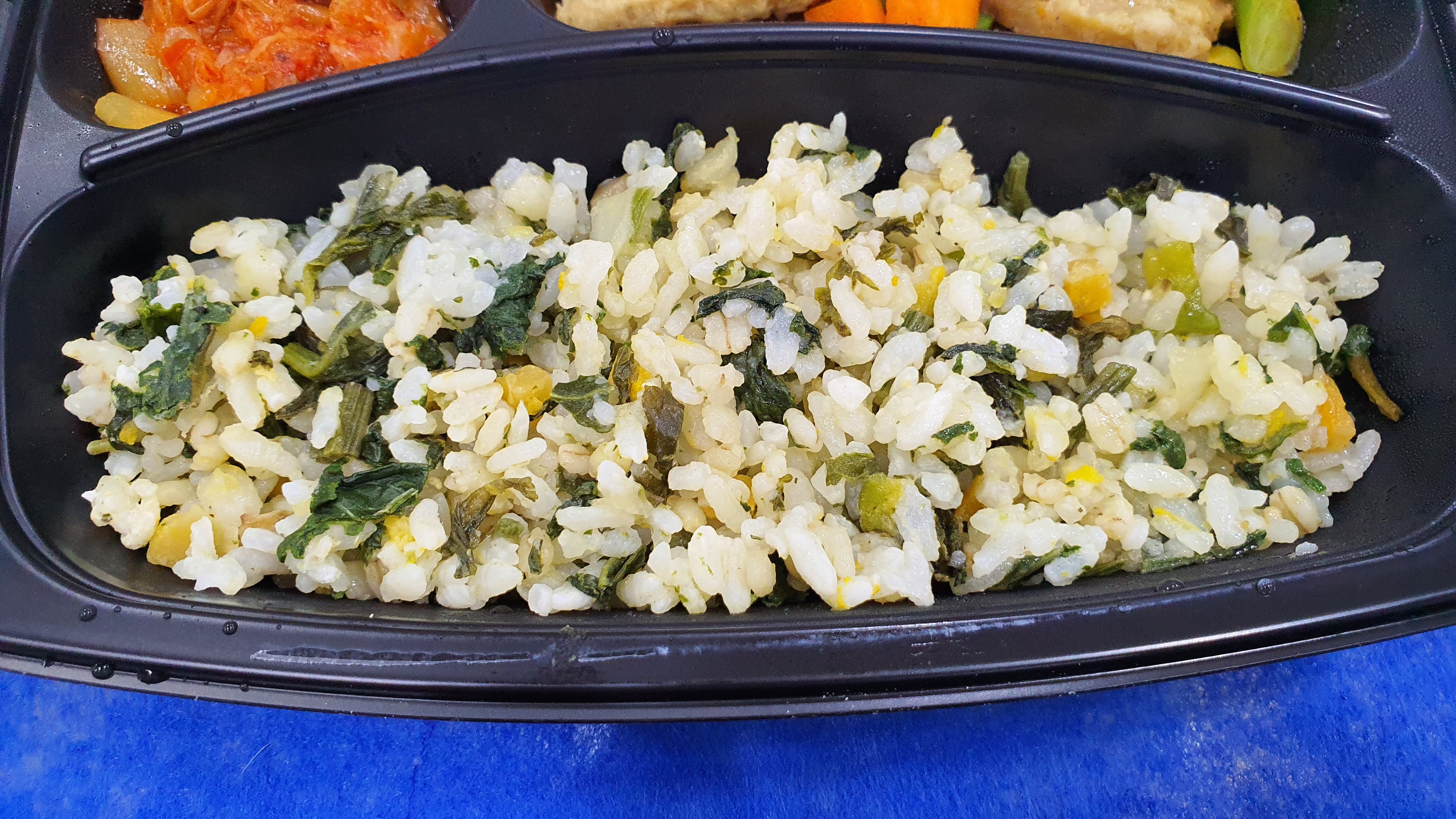 쌀과 알알이곤약, 곤드레나물, 보리, 단호박, 취나물, 깻잎나물 등으로 만든 밥이에요.