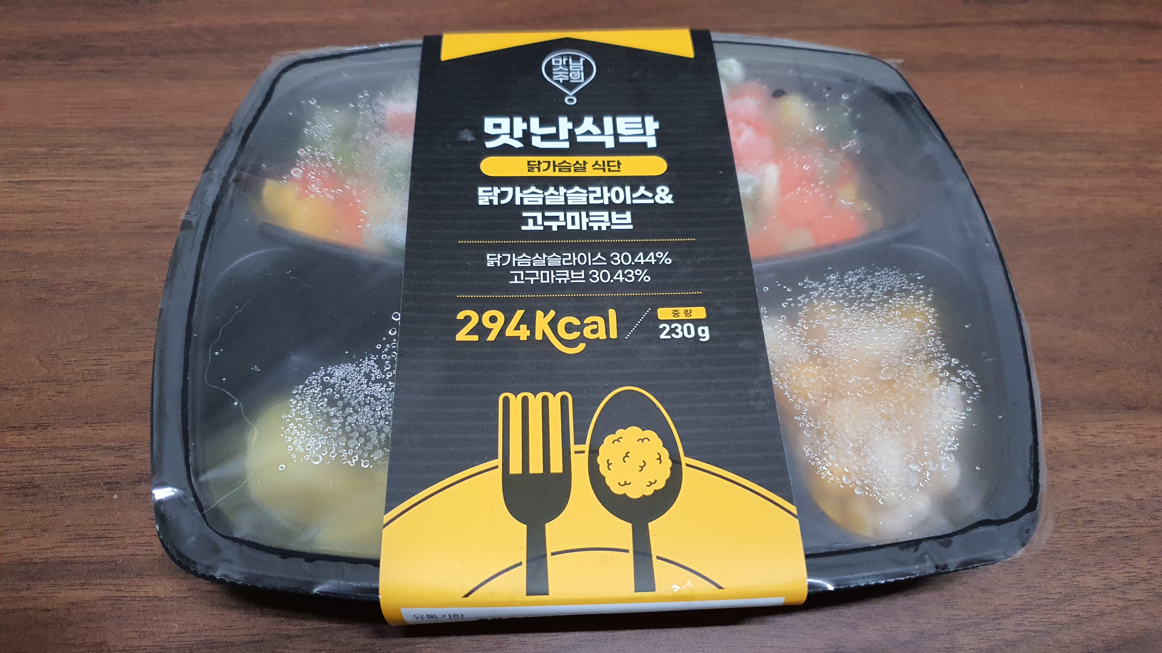 이번에는 맛난 식탁에서 나오는 건강한 식단인 닭가슴살슬라이스 & 고구마큐브를 먹게 되었어요^^