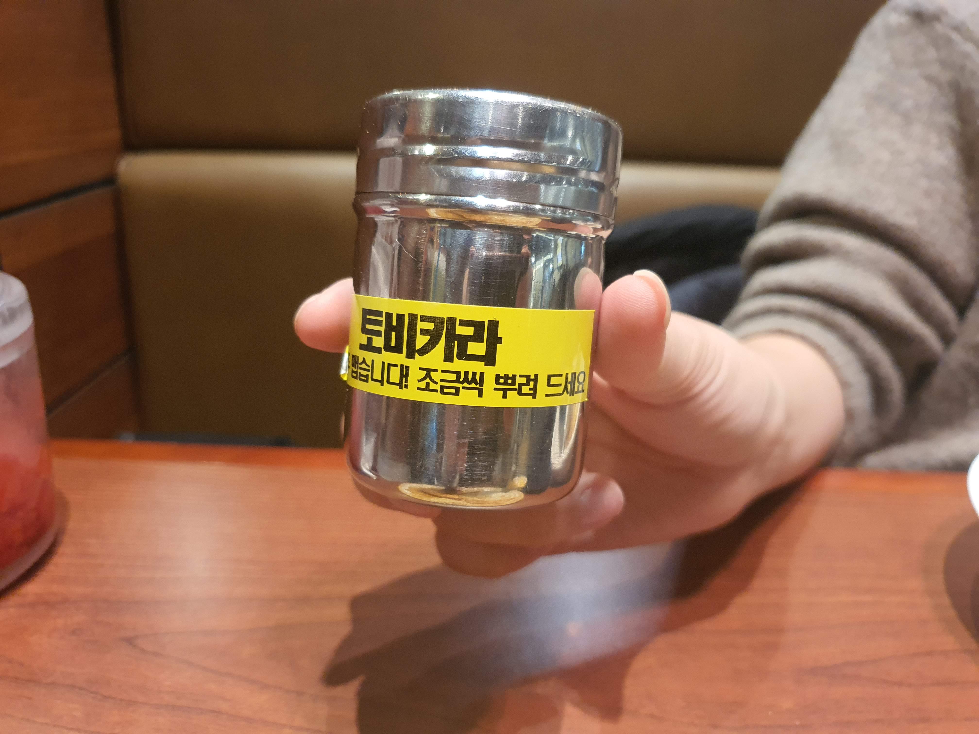저희는 보통맛을 먹었는데요. 콩냥이는 ㅎㅎㅎ 매운맛을 즐기고 싶어서 토비카라를 뿌려 먹었어요.