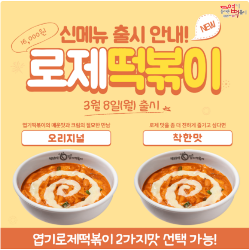 콩냥이의 최애 떡볶이인 동대문 엽기 떡볶이에서 신메뉴 엽기 로제 떡볶이를 출시하였어요!