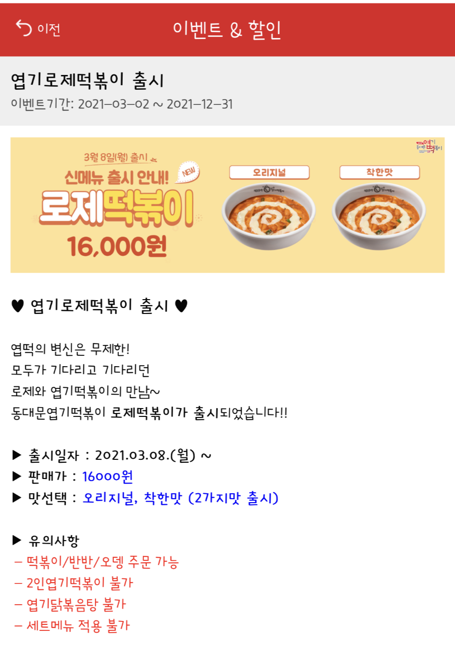 아무래도 전용 앱을 활성화하려는 방침과 이전 짜장 떡볶이의 실패를 만회해보려는 것이 아닐까 하네요. ㅎㅎ