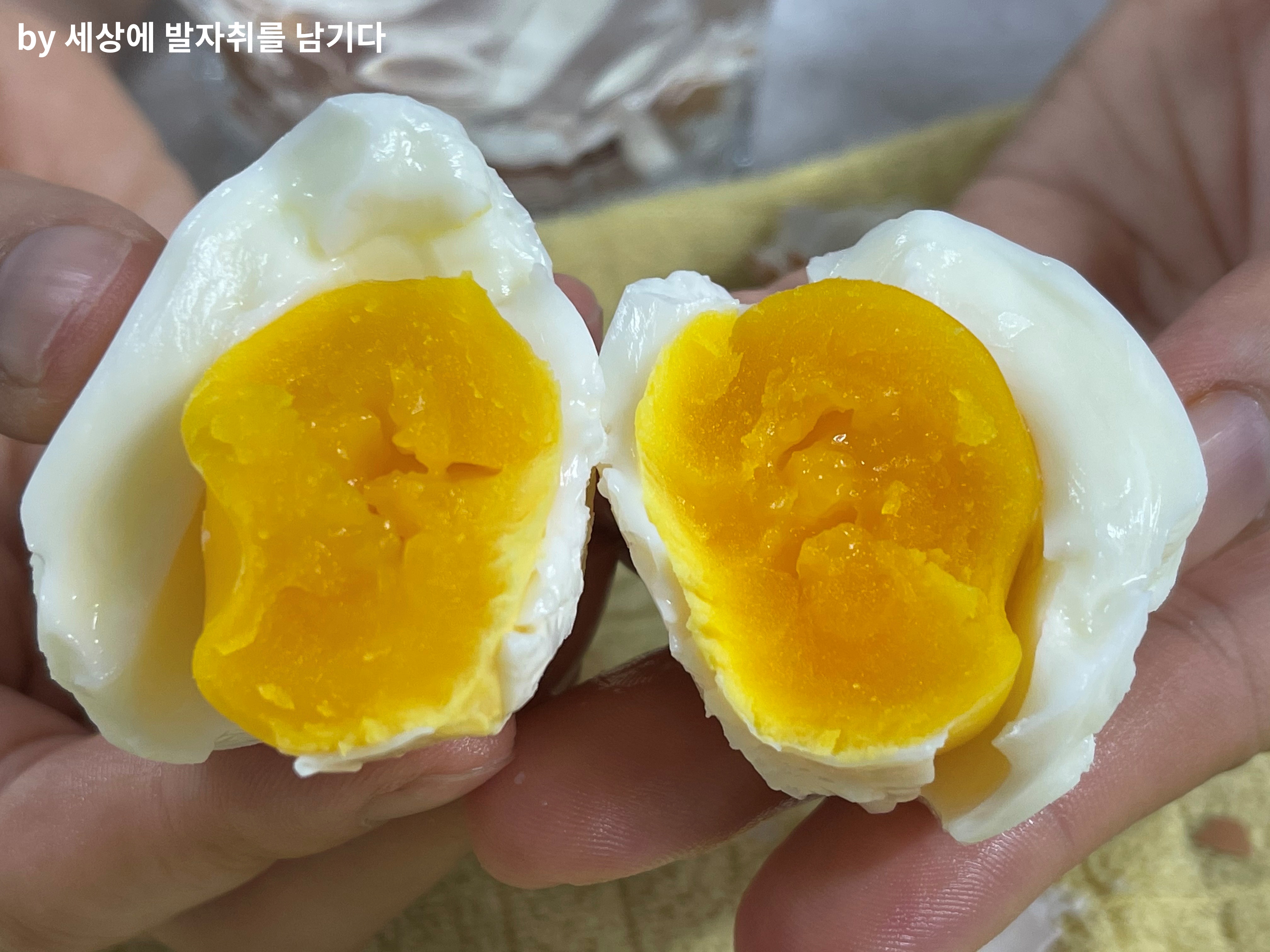 열이 식은 달걀은 완숙으로 정말 이쁘게 쪄졌어요.