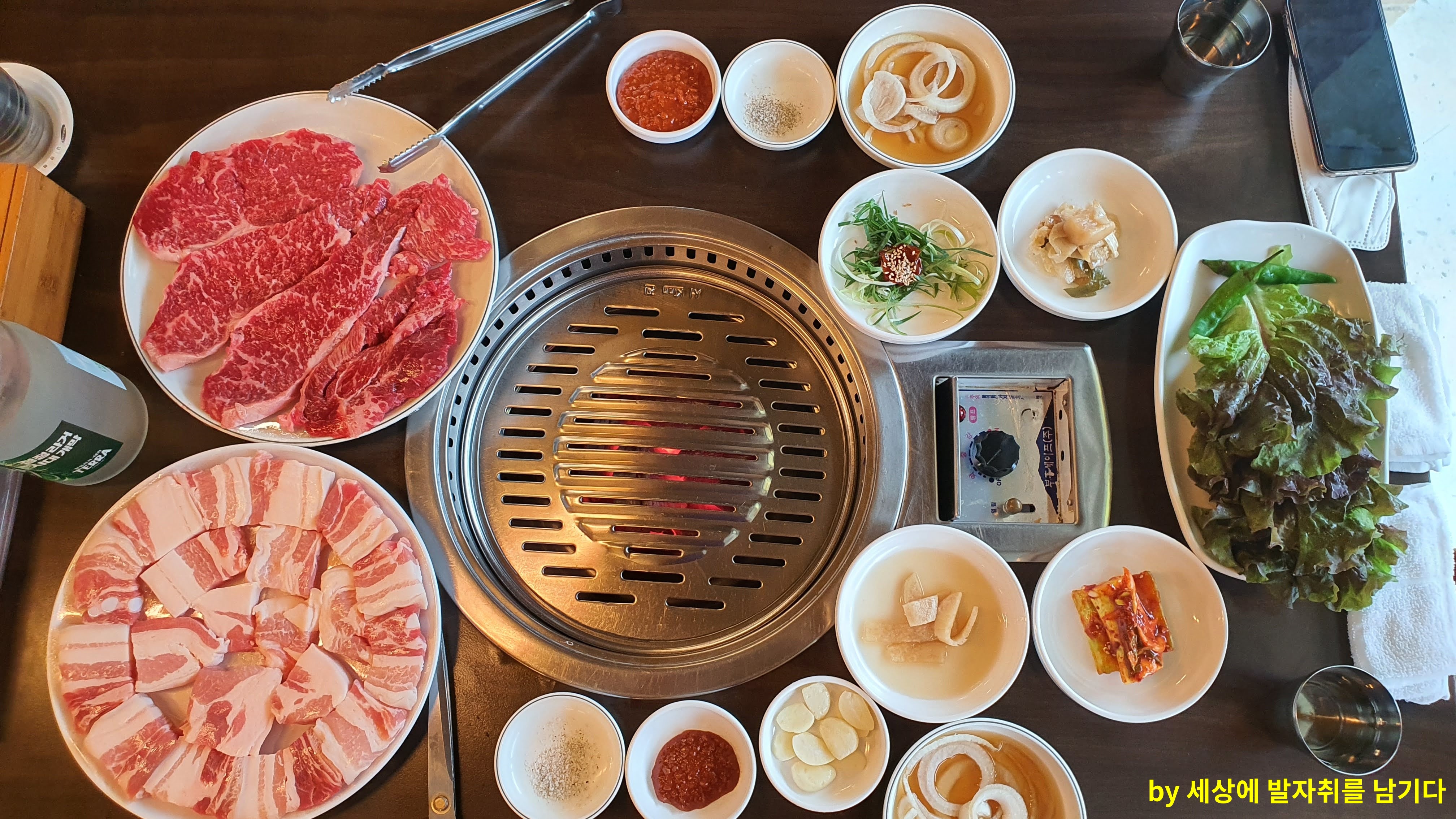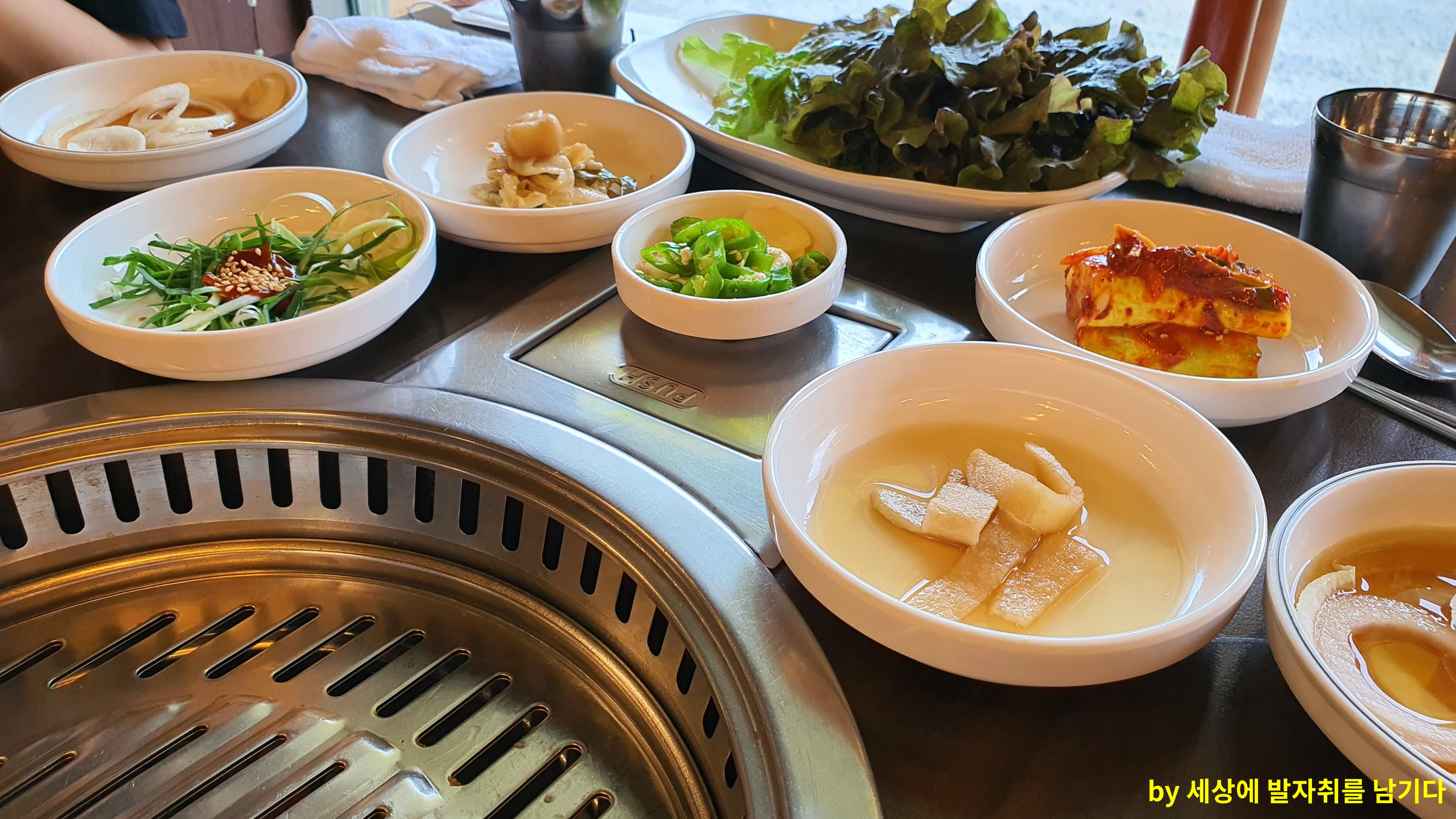 그리고 기본상과 고기가 차려졌어요.