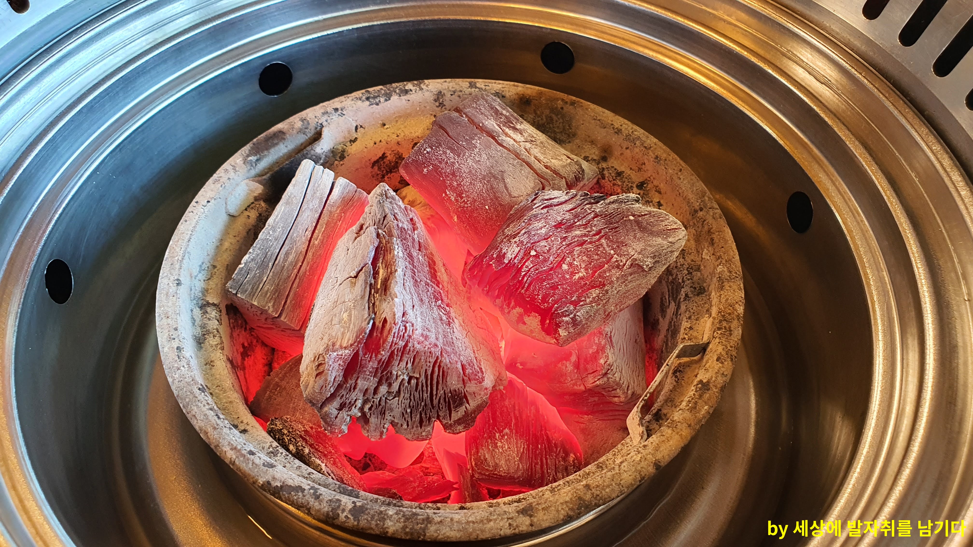 자리에 앉으면 가장 먼저 이쁜 숯불이 올려져요. ㅋㅋ