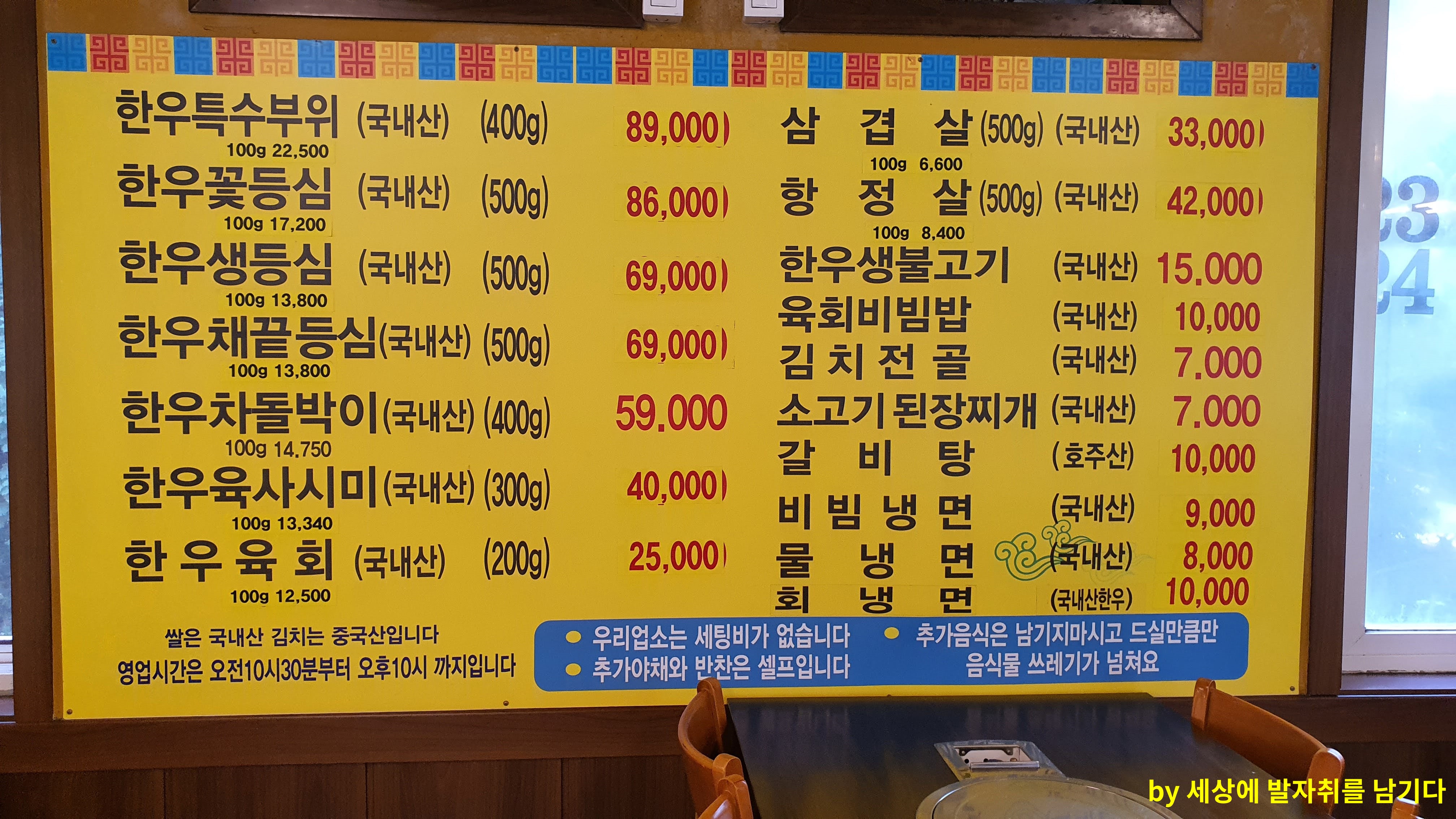 토종 한우 정육점 식당 메뉴판 이미지입니다^^