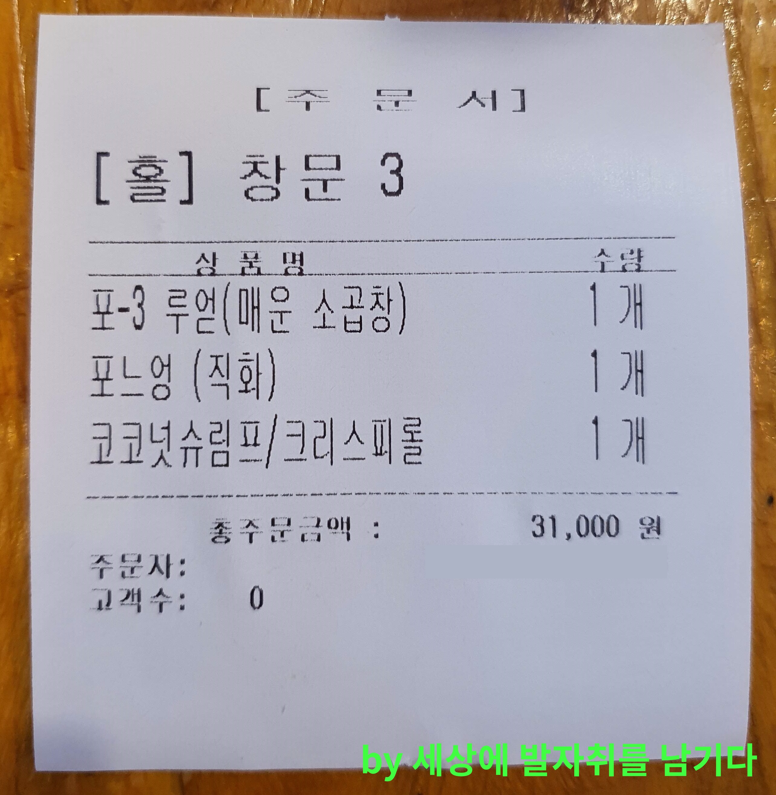 저희는 매운 소곱창 쌀국수(포 루얻)와 숯불 직화 소고기 쌀국수(포 느엉), 코코넛쉬림프&크리스피롤(4ea)를 시켰어요.