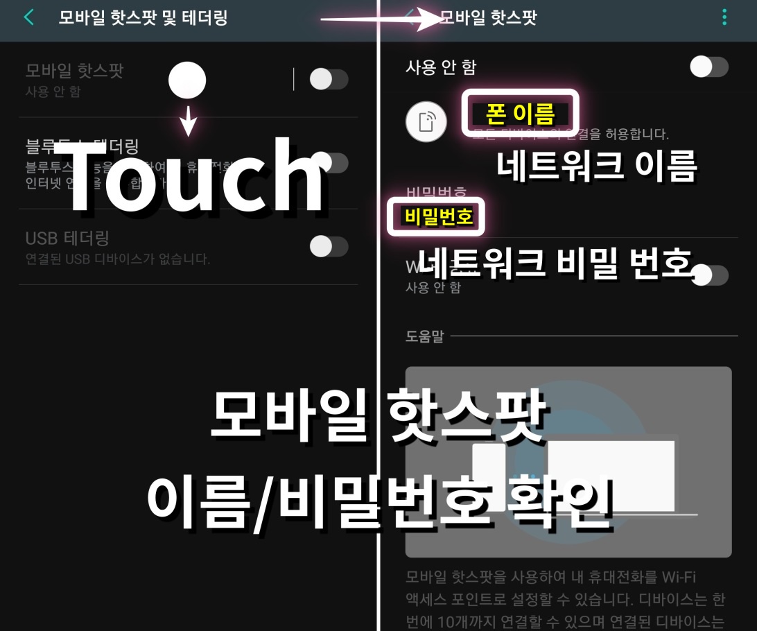 물론 모바일 핫스팟 이름도 원하시는 걸로 변경이 가능합니다.