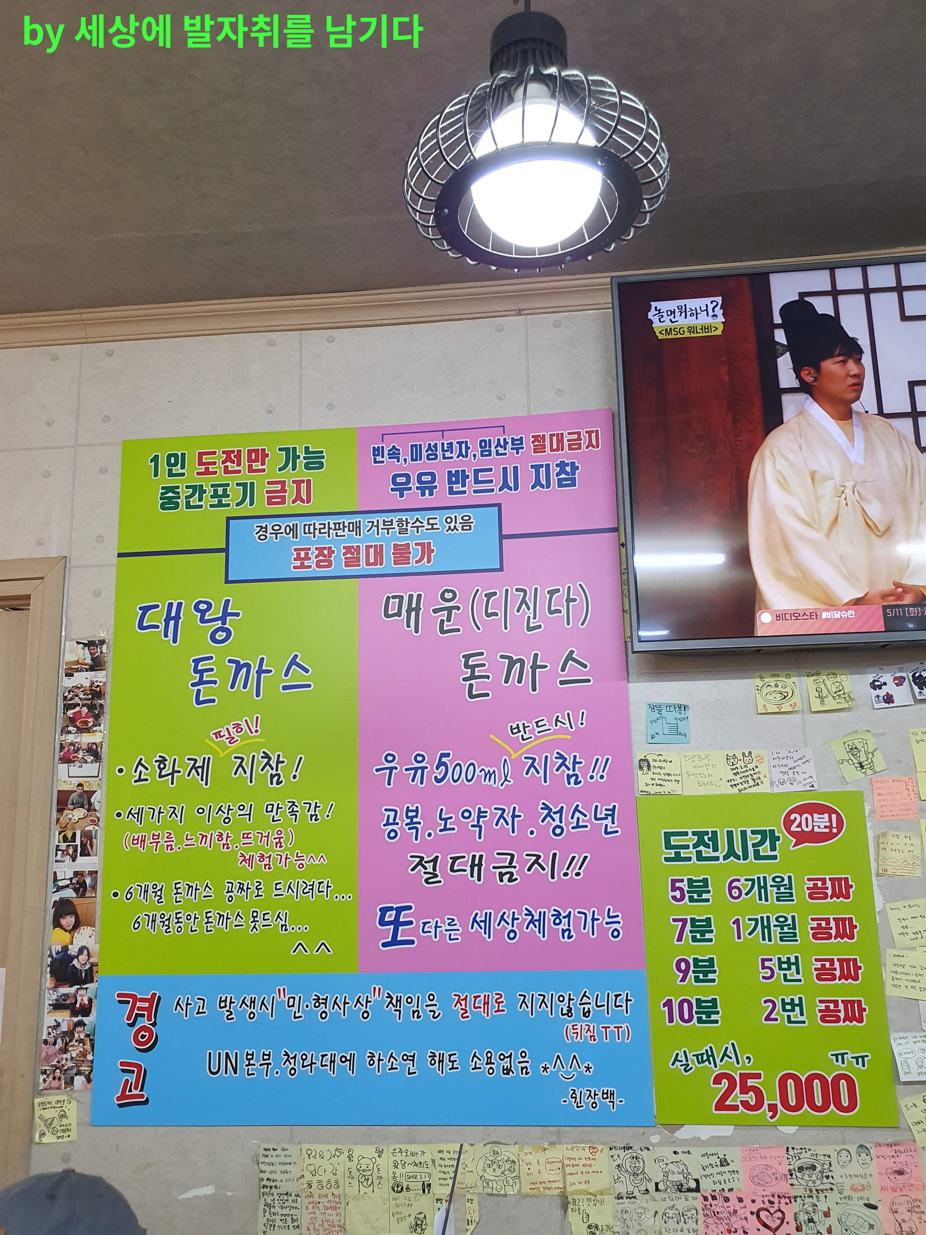 온정돈까스에는 많은 사람들이 방문을 하여 '디진다 돈까스'에도 도전을 하고, 방문 인증을 한 거 같더라고요.