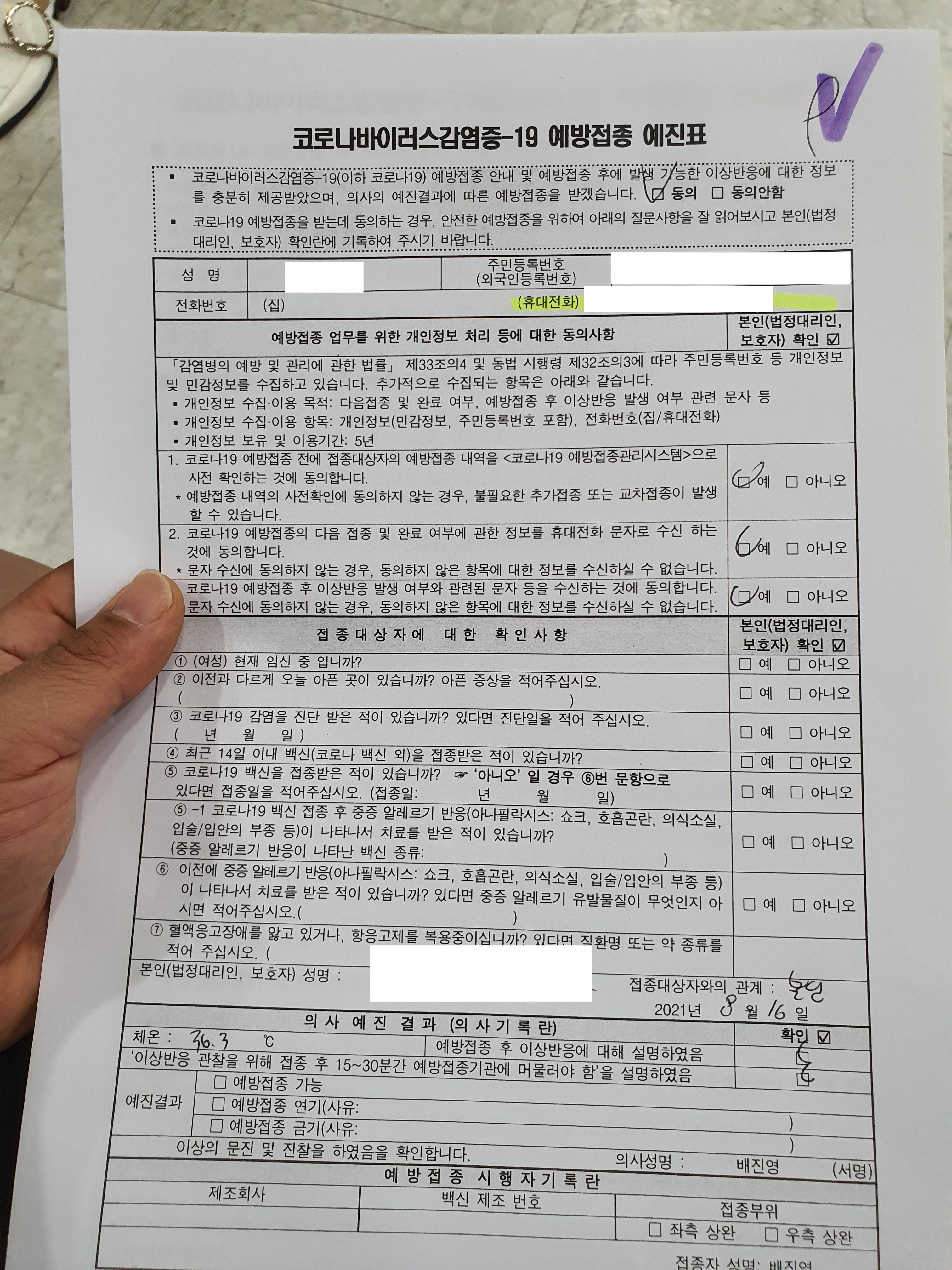 그리고 제 차례를 대기 했죠. 백신에 대해서 얘기도 많고 해서 그런지 은근 긴장이 되더라고요. ㅎㅎ