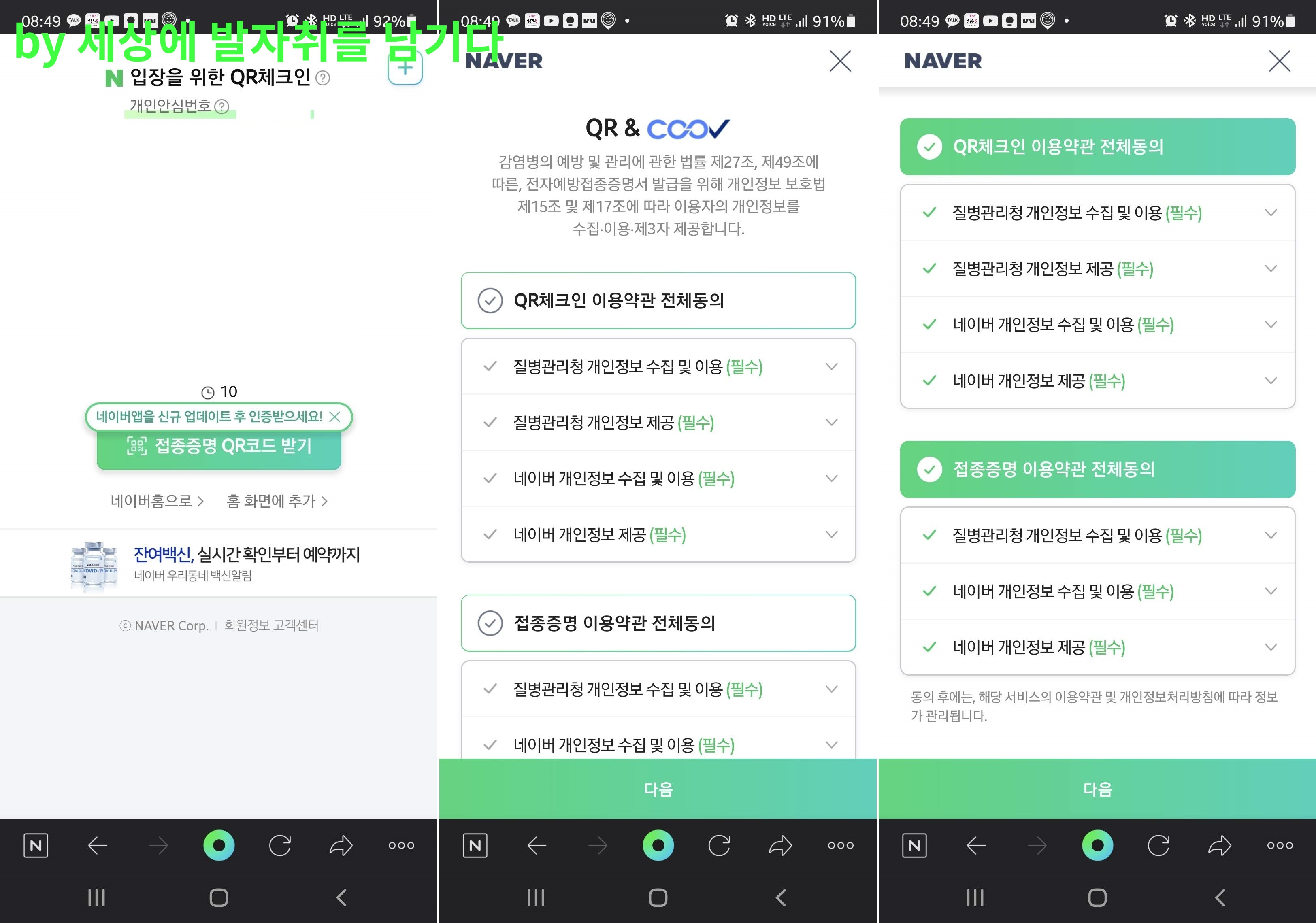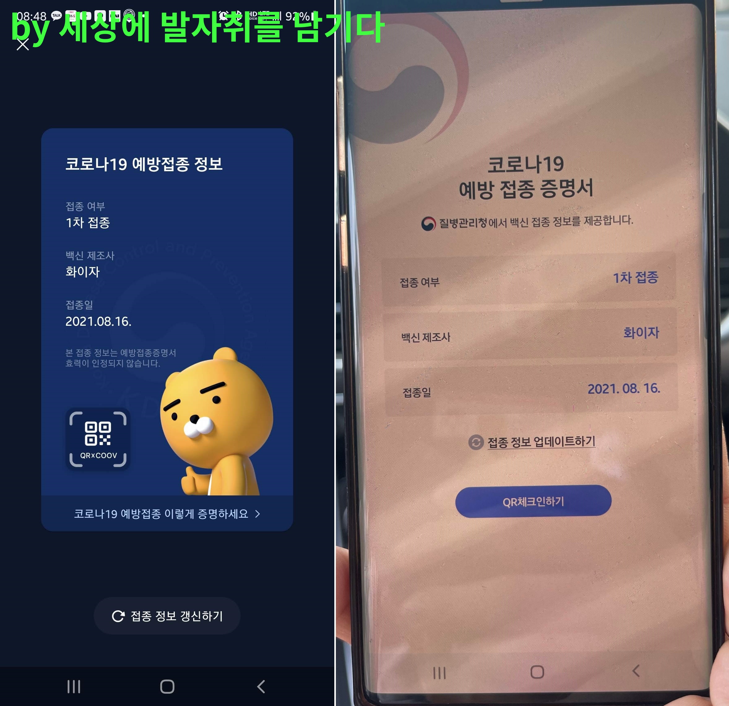 QR체크인에 접종증명을 하라고 해서 카카오와 네이버 QR체크인을 접종 증명 QR체크인으로 업데이트했어요.
