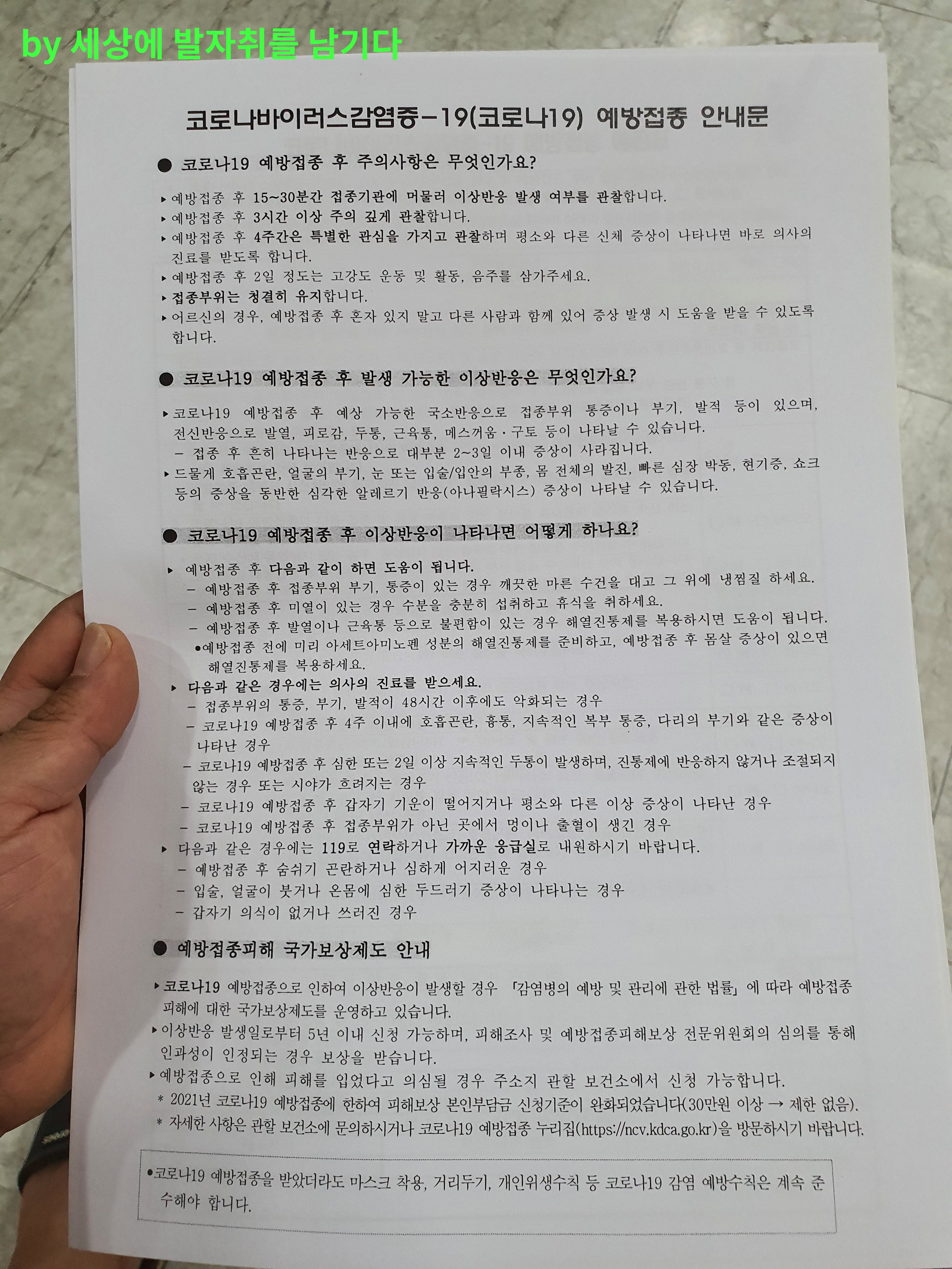 먼저 맞은 사람들이 하루면 팔 뻐근한 거는 없어진다고 하니 오늘 하루는 얌전히(?) 지내야겠어요. ㅎㅎ