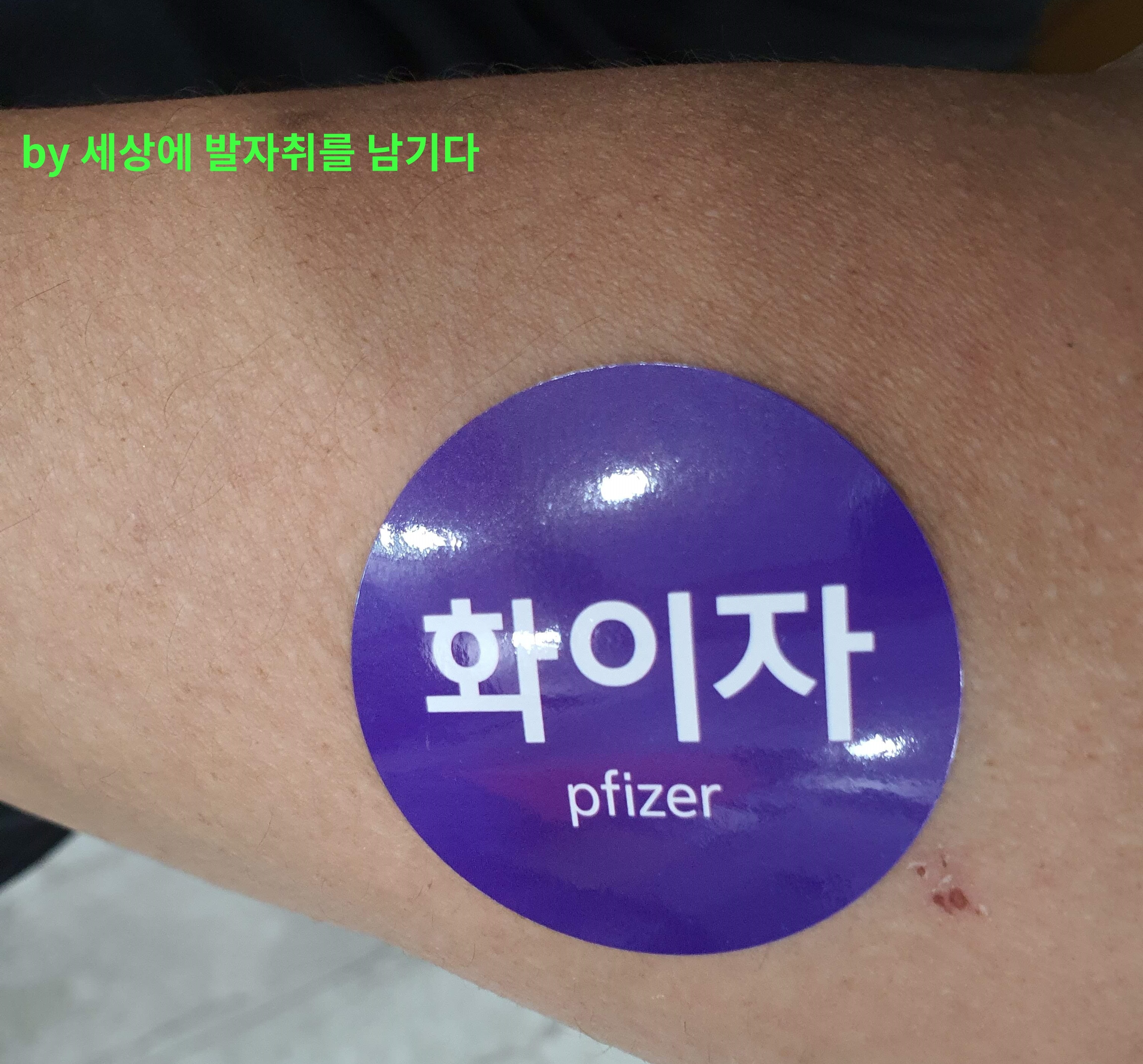 그리고 팔에 백신 종류를 표시하는 스티커를 붙여 줬어요.