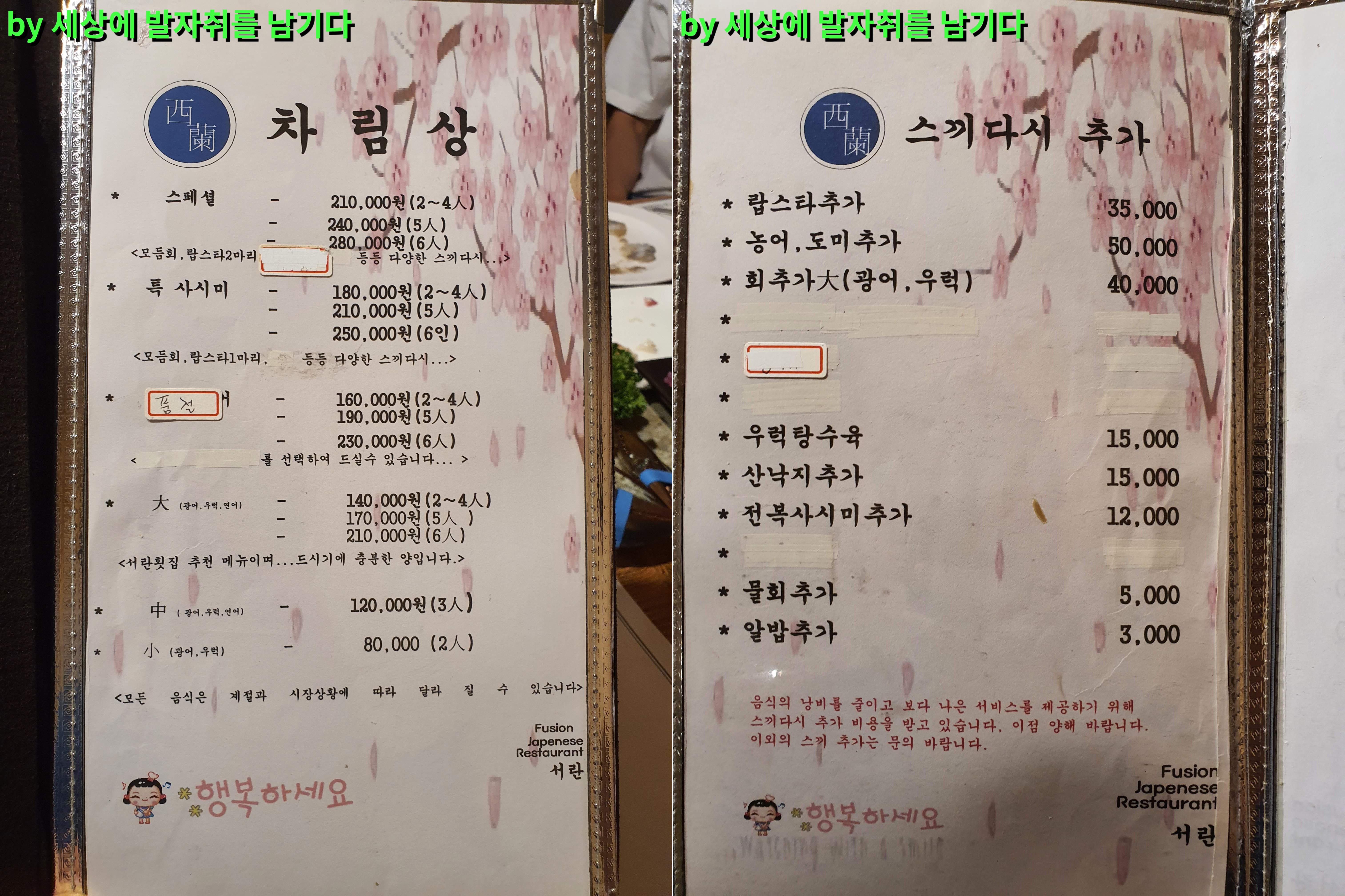 간판은 서란회인데, 서란 횟집이라고 되어 있다. ㅎㅎ