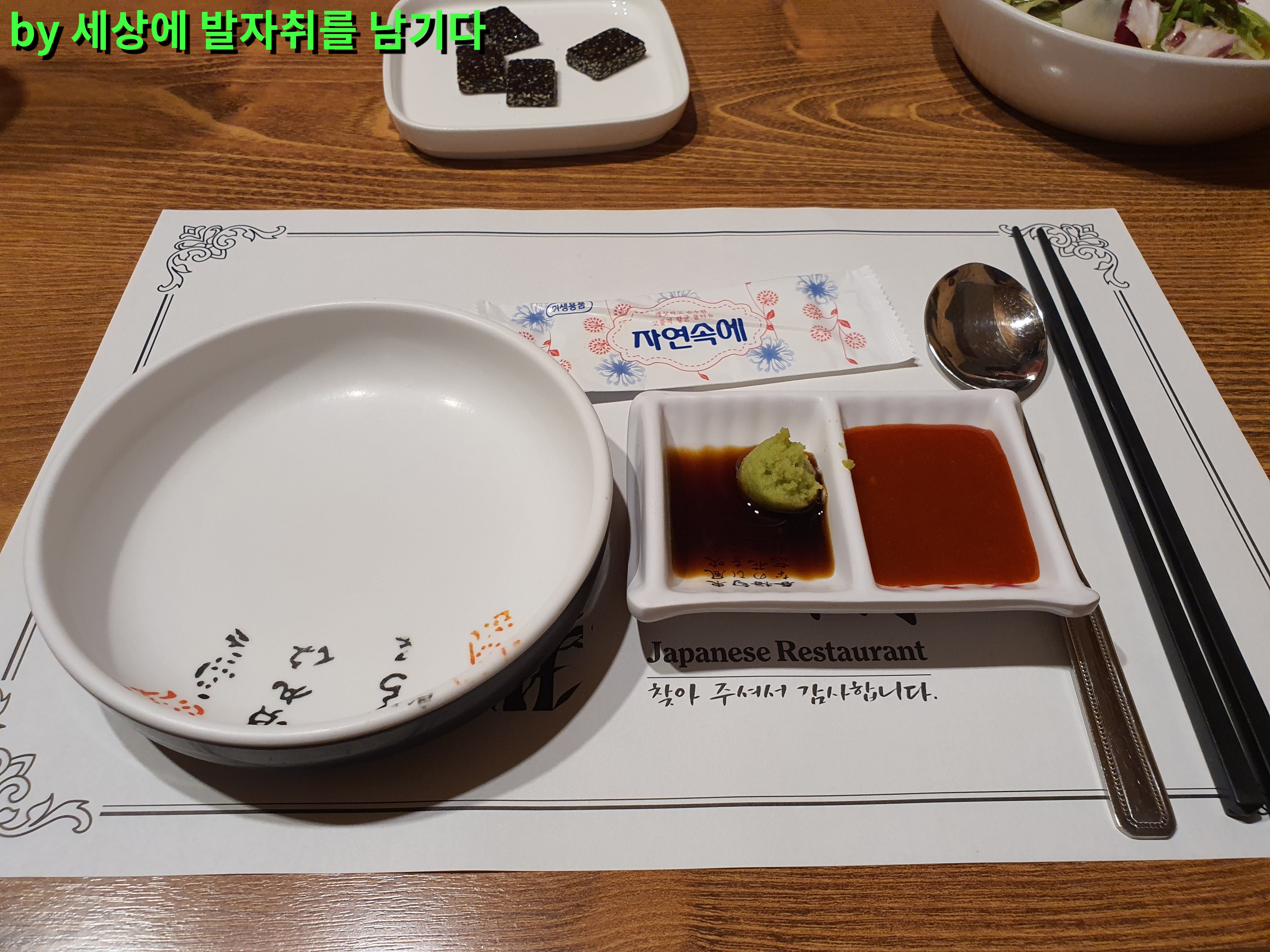 우리가 처음 들어선 자리에는 앞접시와 장을 담을 그릇, 숟가락, 젓가락이 세팅이 되어 있었다.