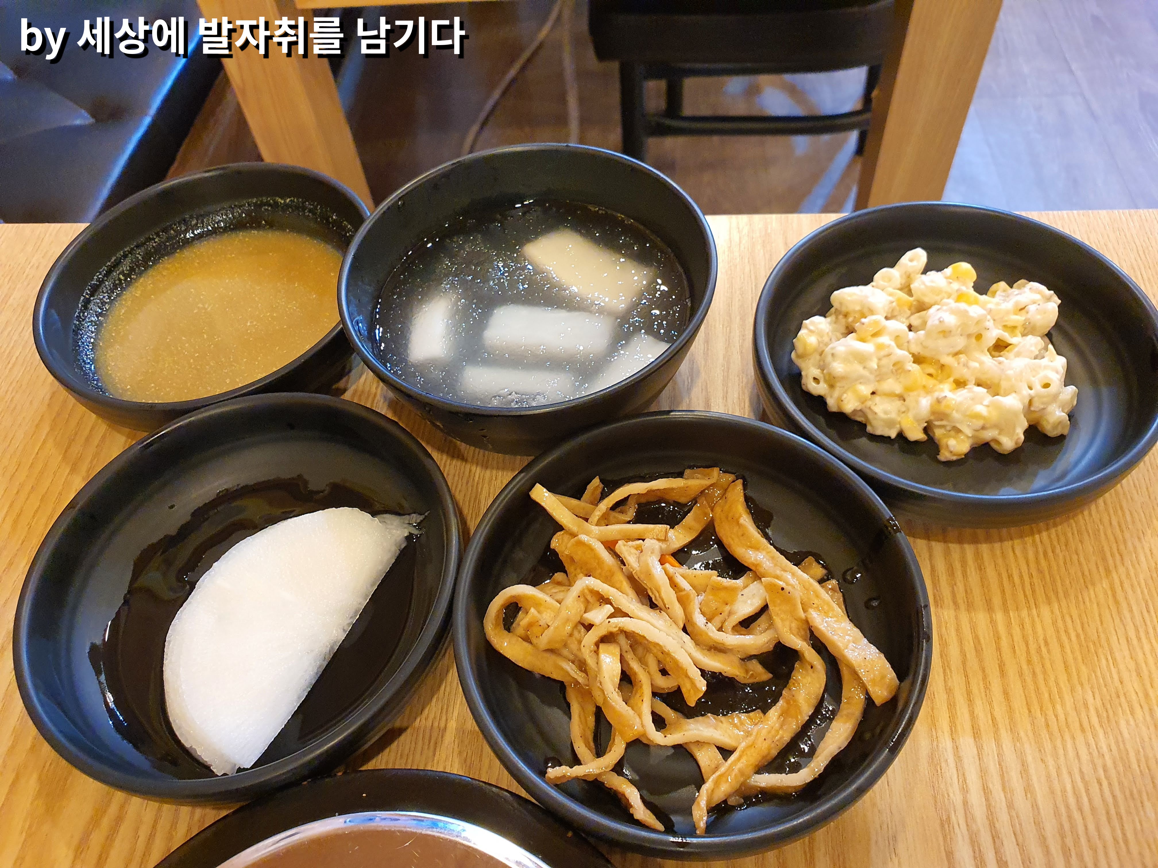 저희는 소물갈비와 계란찜, 주먹밥을 시켰어요. 주문을 하고 기본 찬이 차려졌어요.