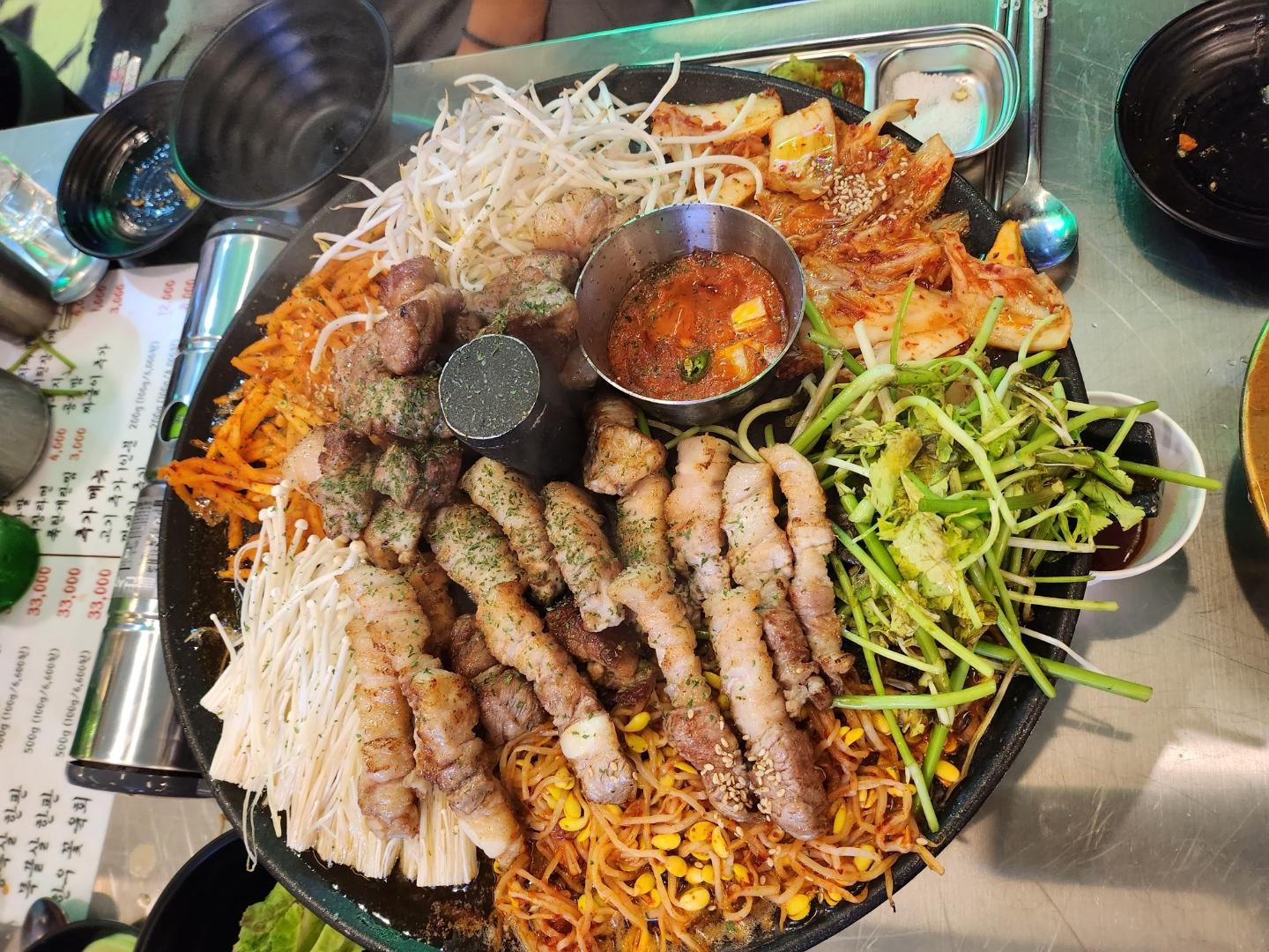 된장찌개에 시원한 맥주를 한잔 해주면서 10분-15분 정도 기다려주면 나오는 돼통령 모둠한판!!