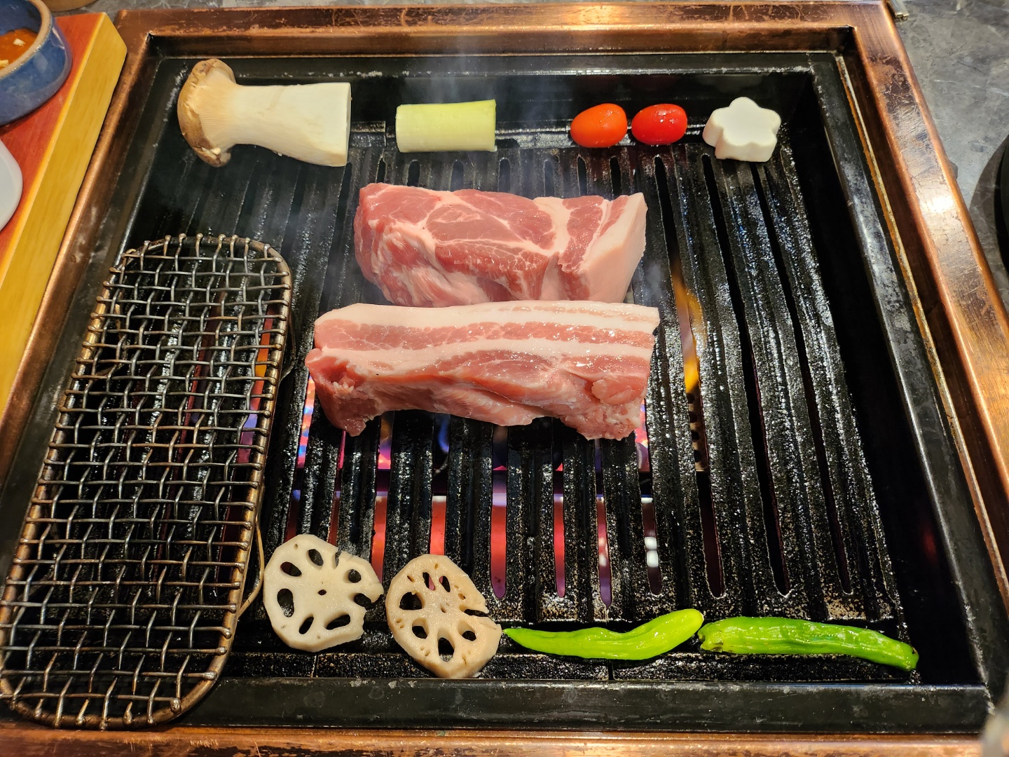 고기가 나오고 직원분께서 바로 불에 올려 구워주시네요.ㅎㅎ