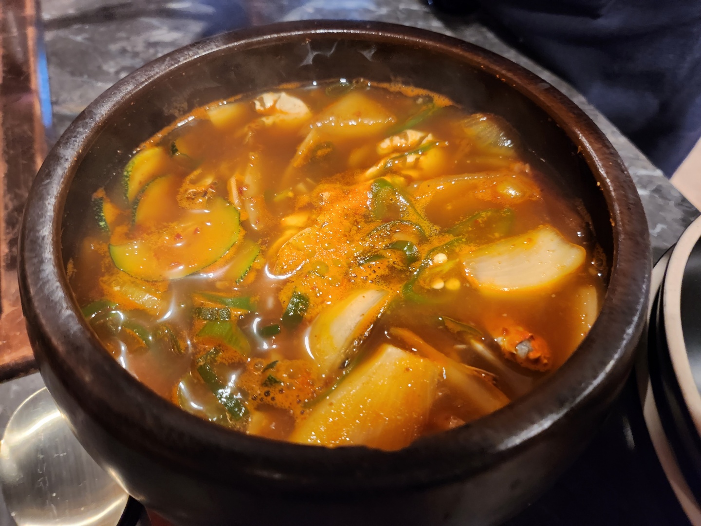 고기가 구워지고 있으니 나온 꽃게 된장찌개!