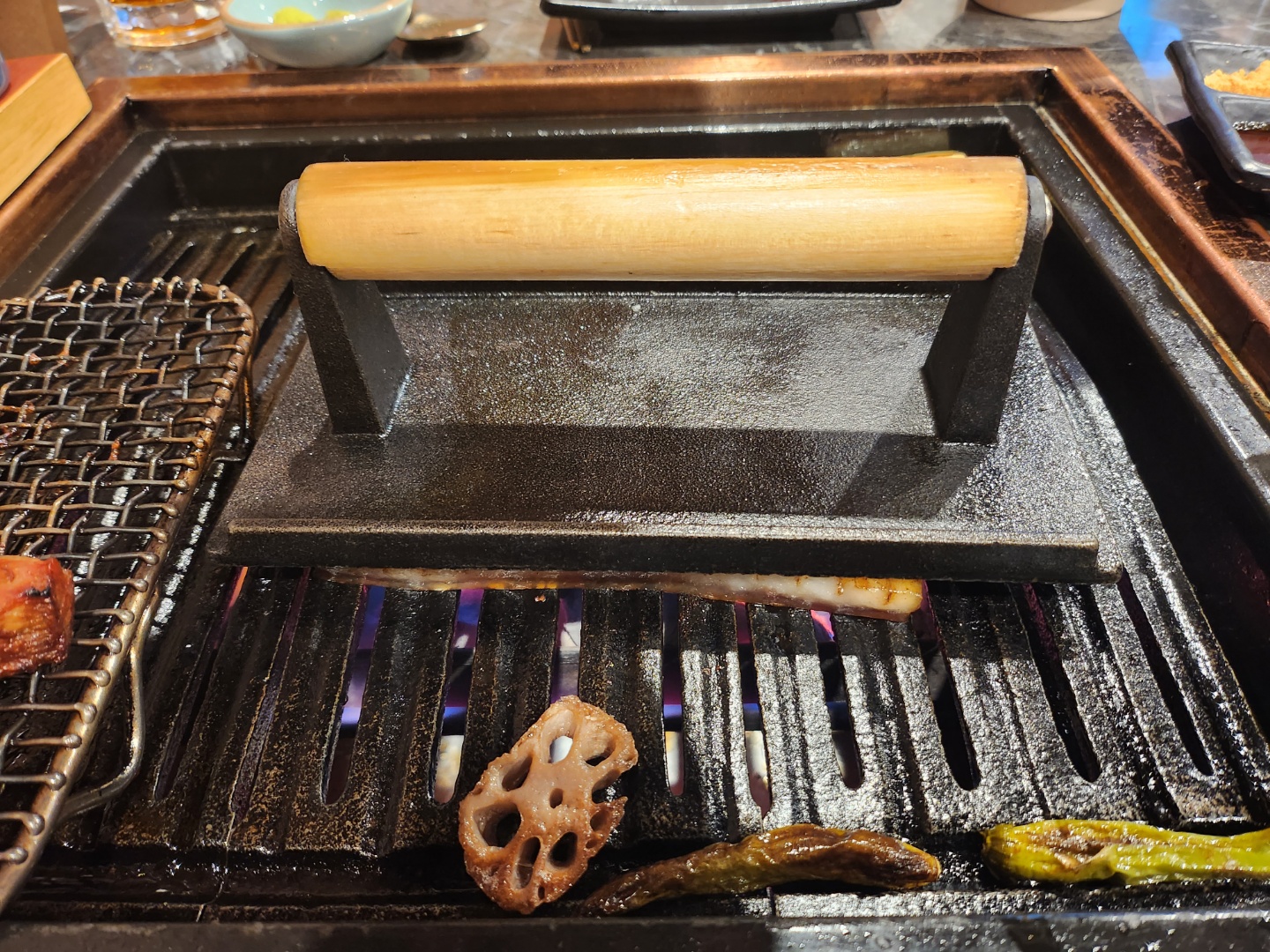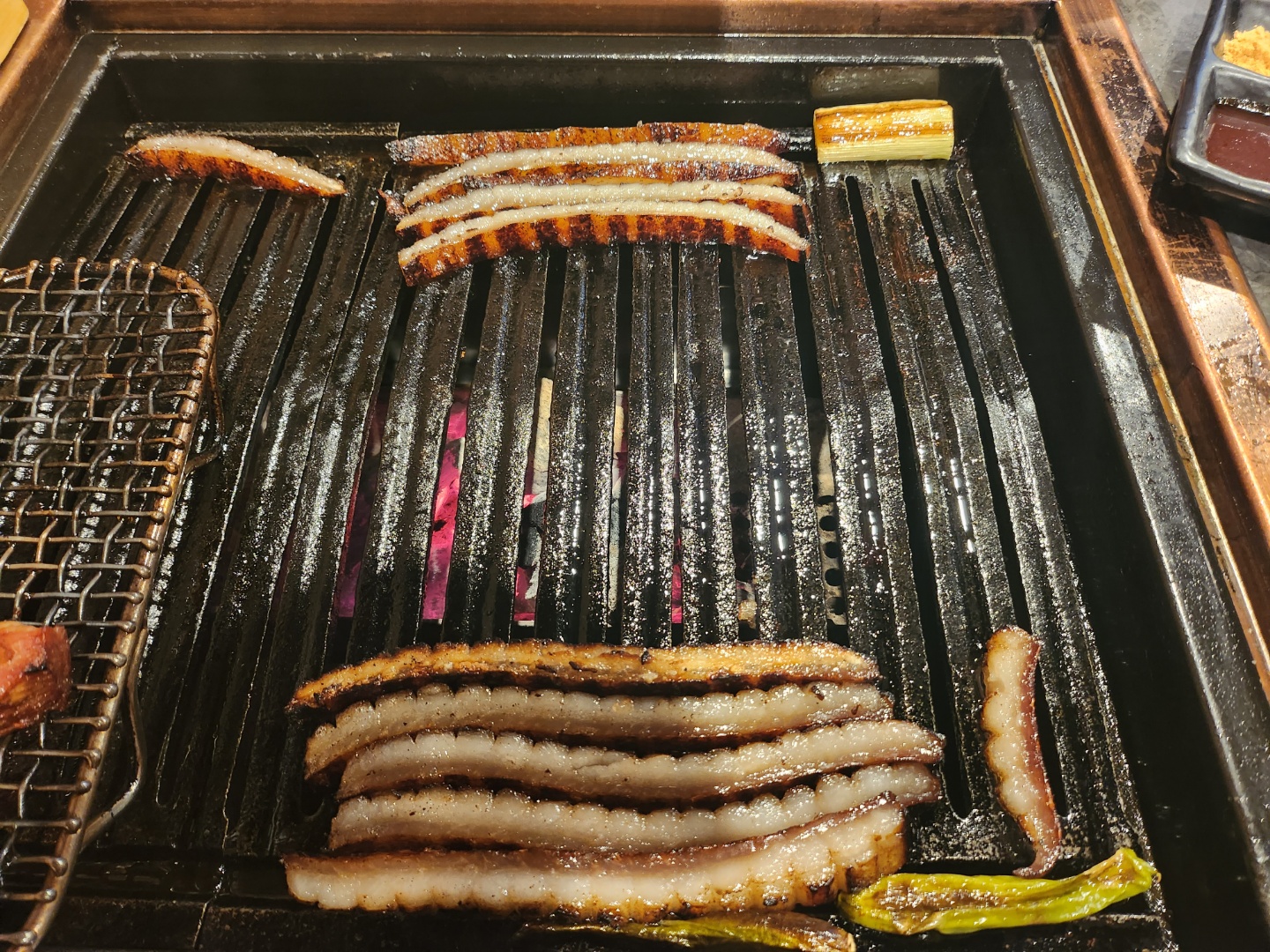 고기를 다 먹고 나면 껍데기도 구워주시러 직원분이 슝~!