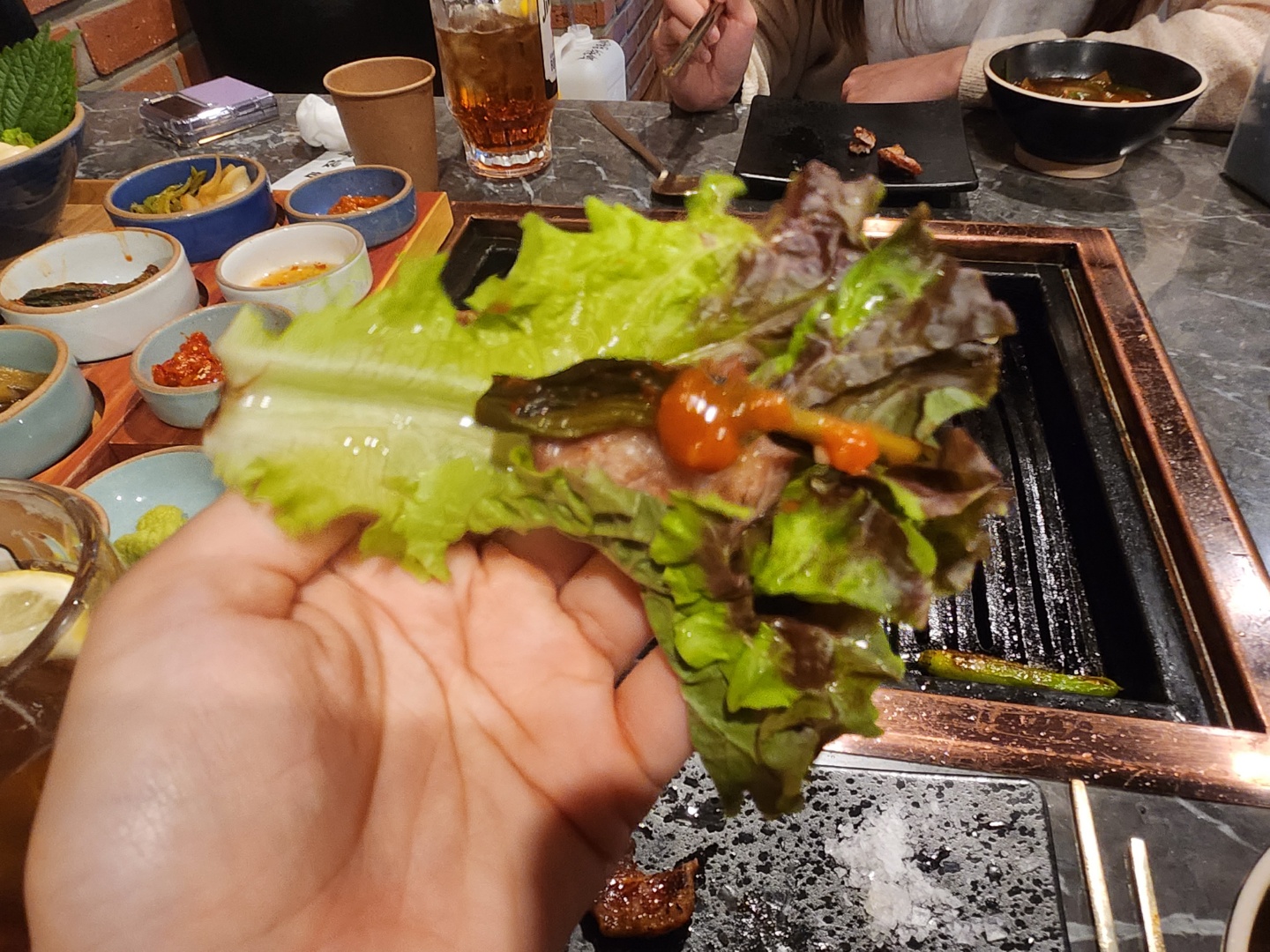 괜히 죄송한 마음이 들지만.. 고기는 구워주시는 대로 먹는 게 제일 맛있을 것 같아 가만히 있었습니다!ㅎㅎ