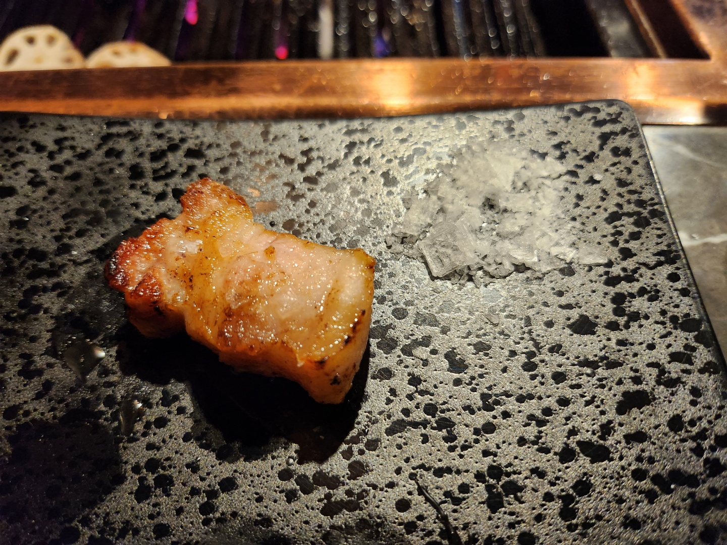 처음엔 소금에 찍어 원육 본연의 풍미를 느껴보고!