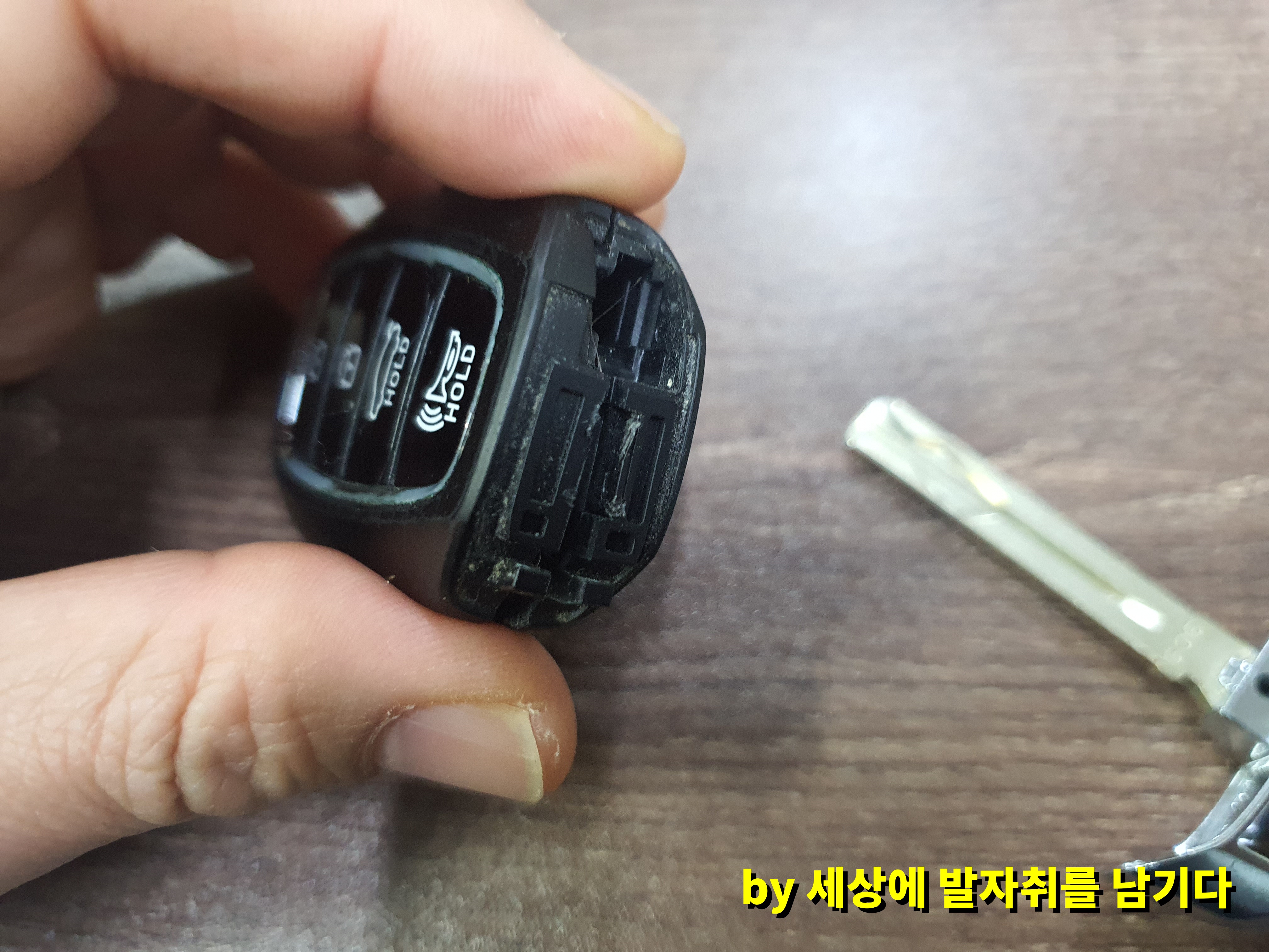 자 그럼 자동차 리모컨 배터리를 교체하기 위해서 리모컨에서 배터리를 분리해 볼게요.