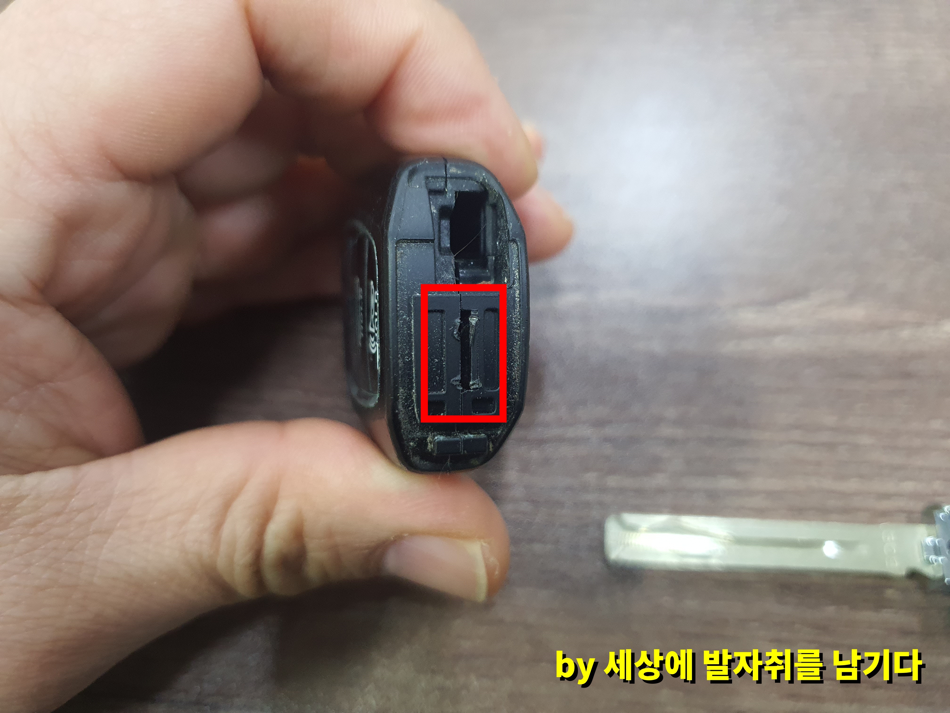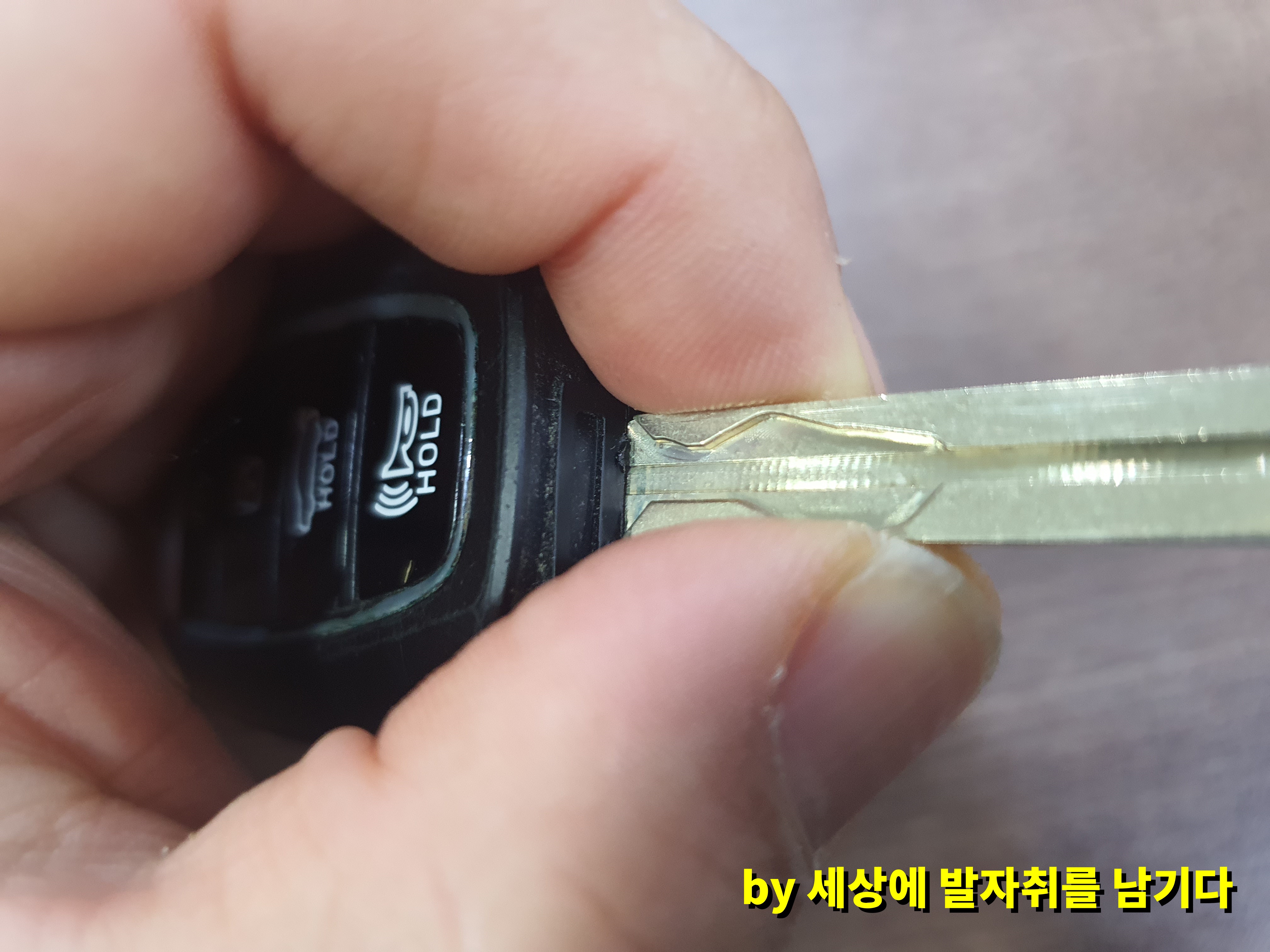 2. 보조키가 분리된 부분의 홈에 키 끝을 끼운다.