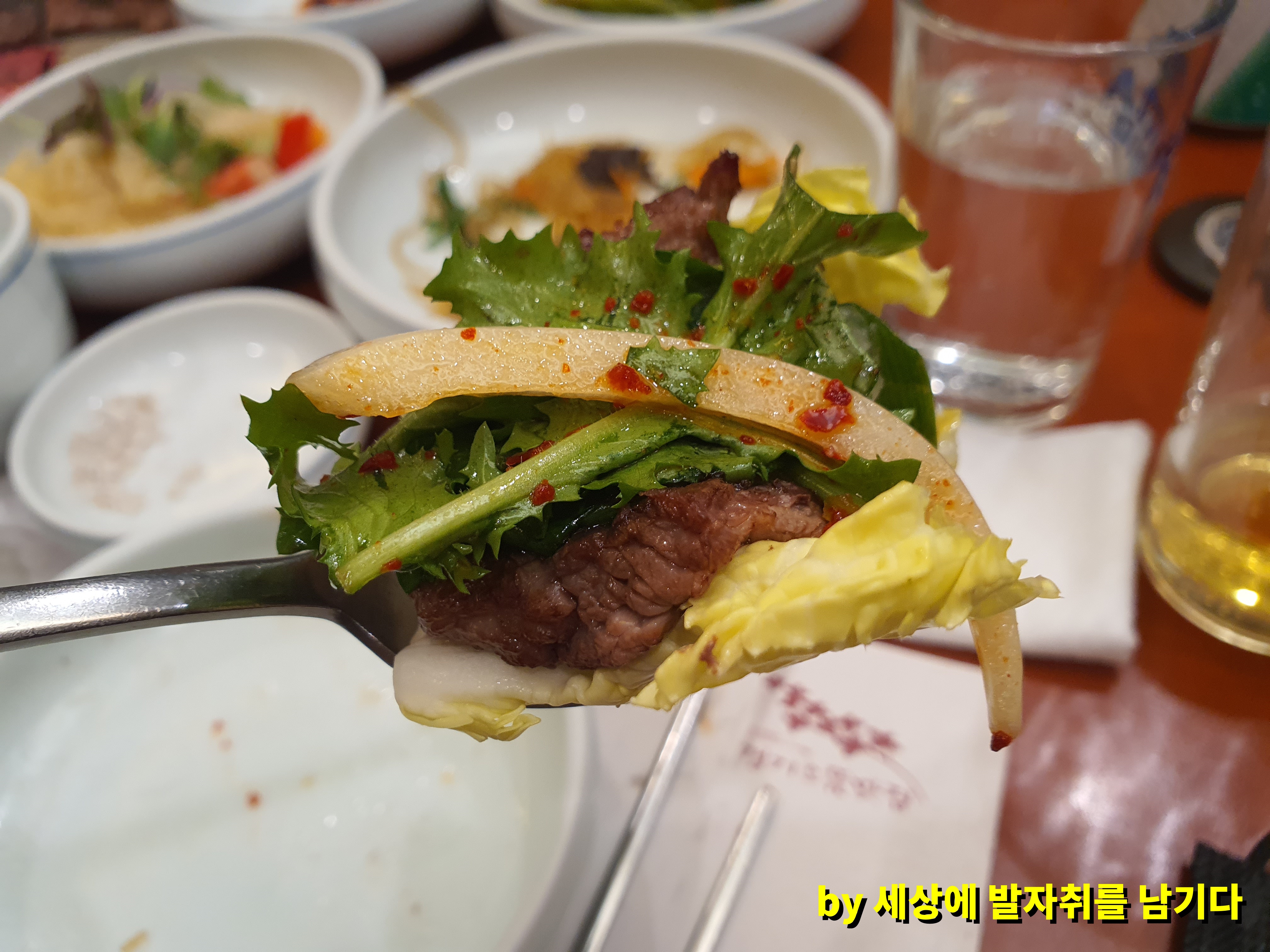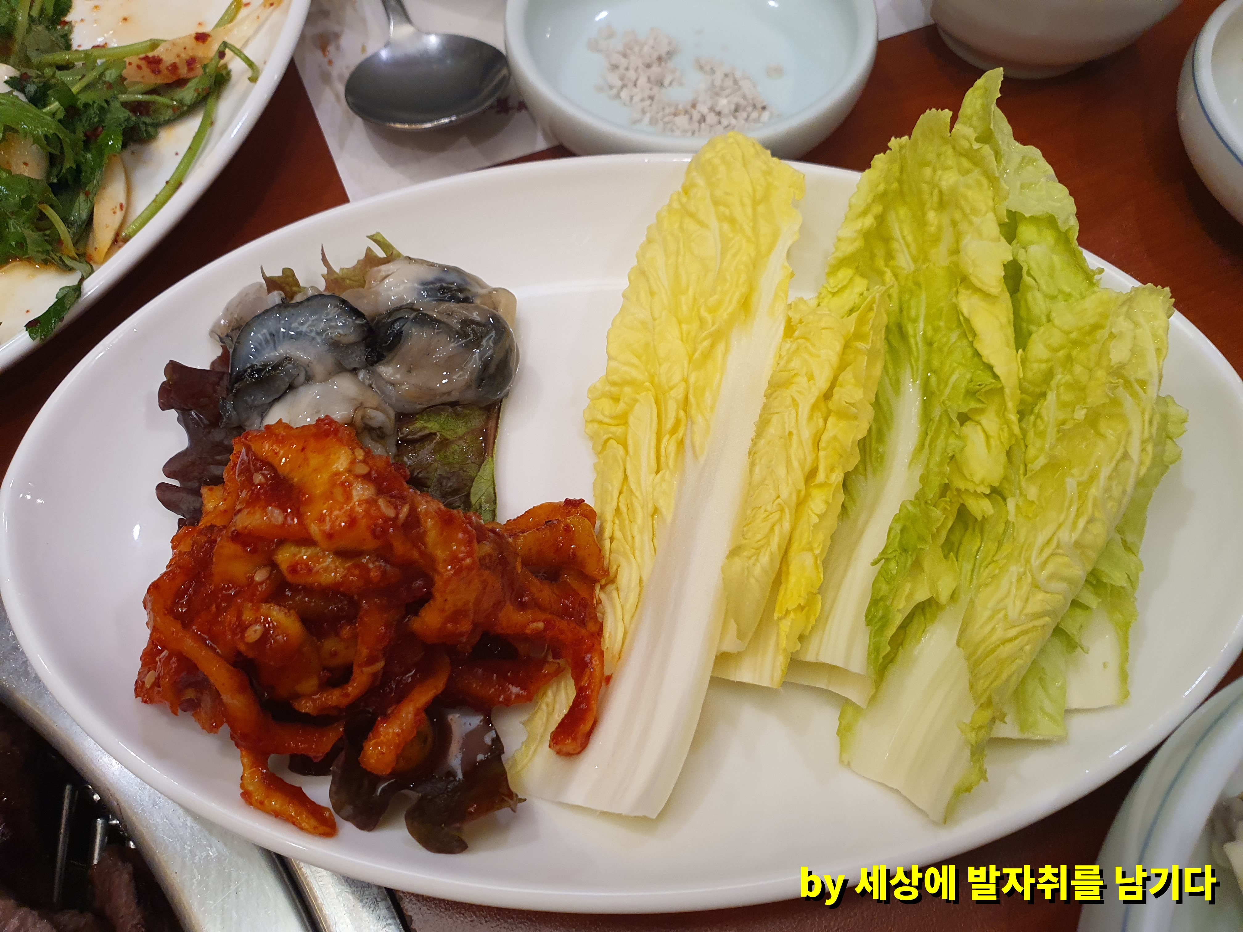 그리고 서비스인지, 기본 찬인 지는 모르겠는데 굴보쌈을 주시더라고요. ㅎㅎㅎ