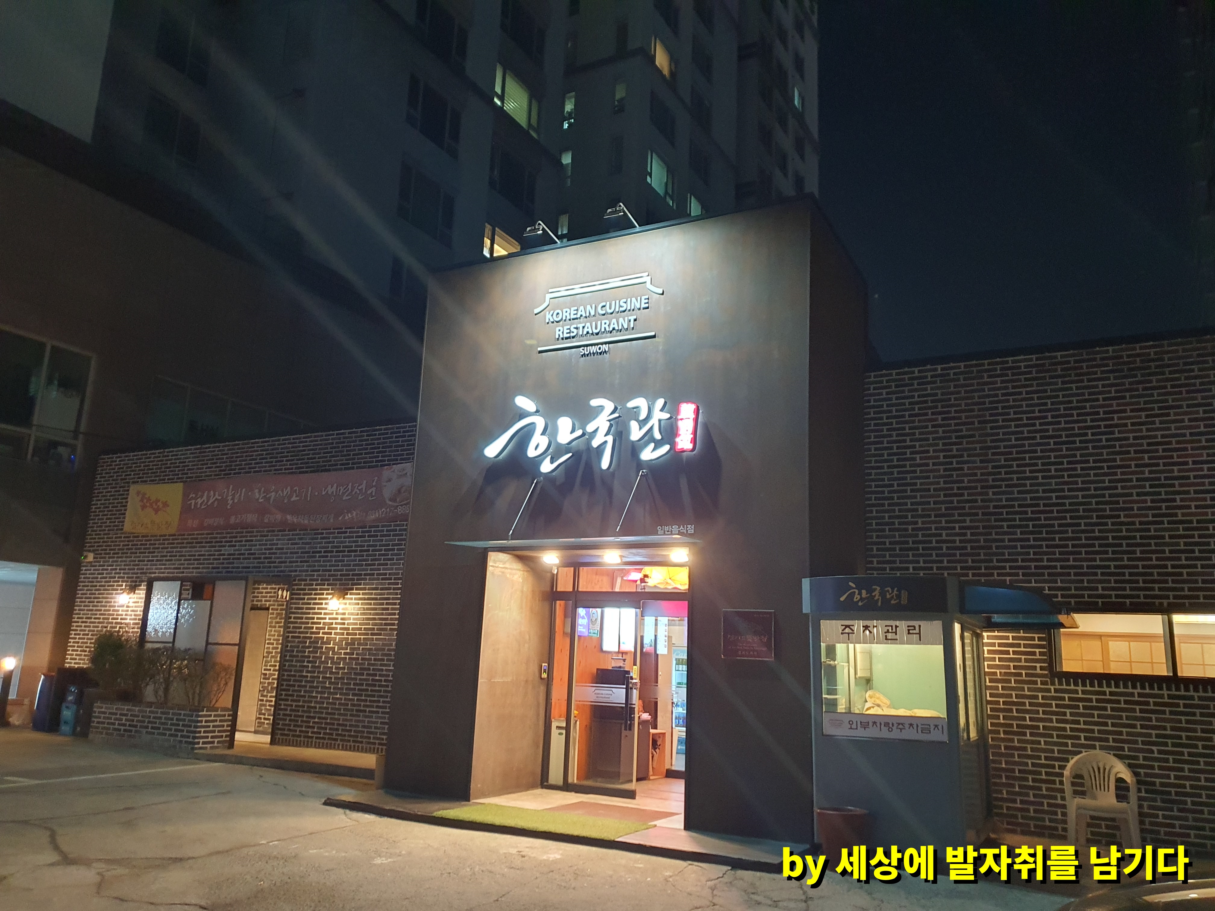수원 인계동에 위치한 한국관 앞에는 대략 10대 미만 주차를 할 수 있는 공간이 있었어요.