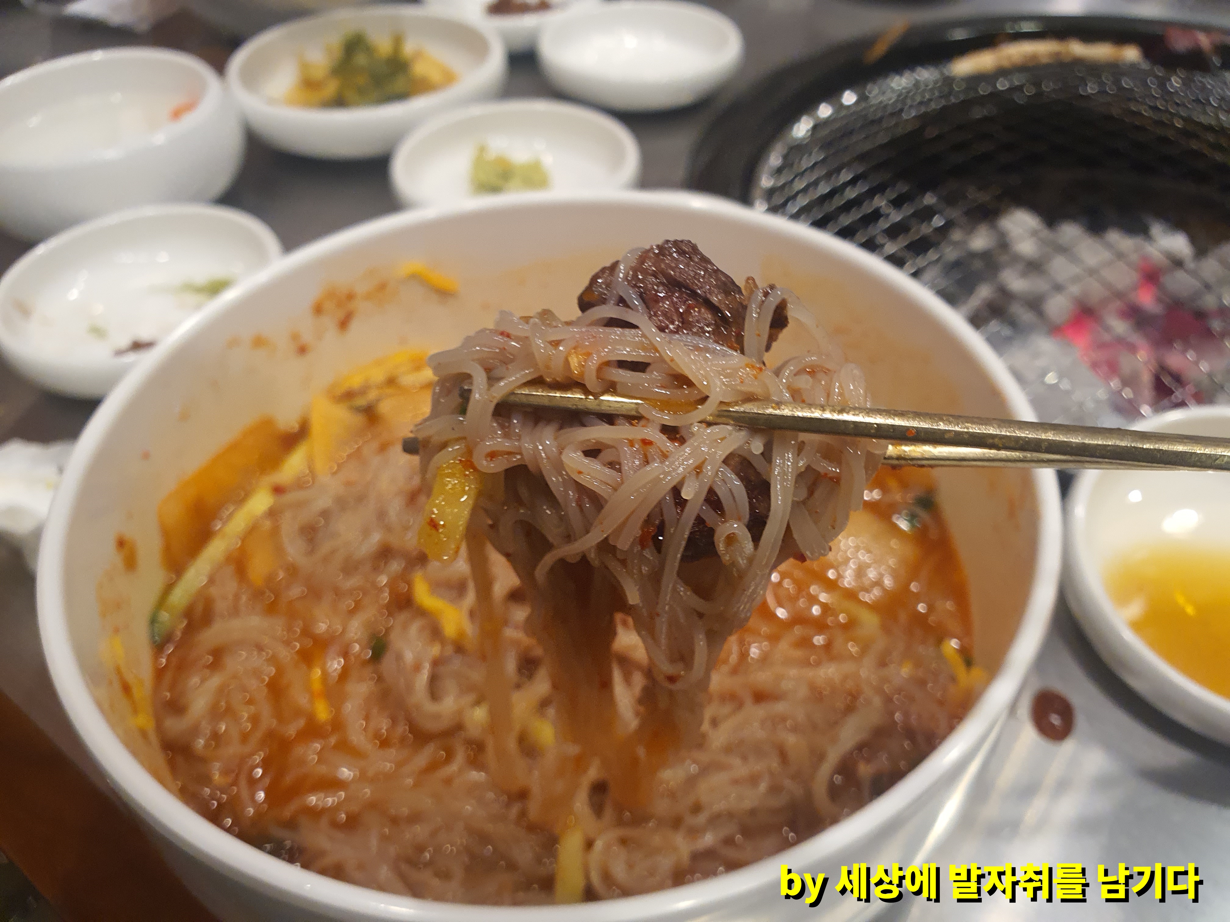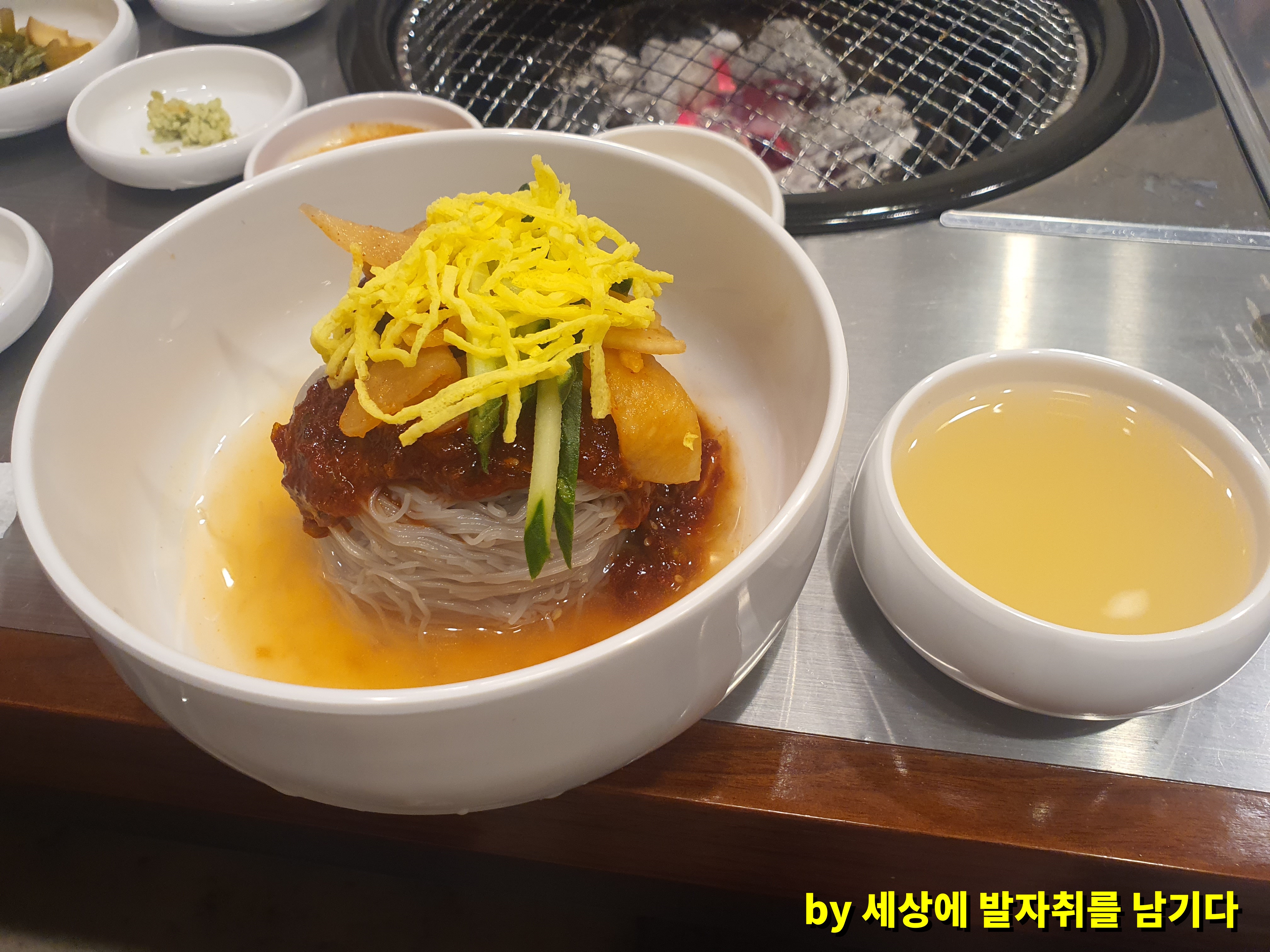 그리고 이번에는 '비빔냉면'을 시켜서 고기와 먹기로 했어요. ㅎㅎㅎ
