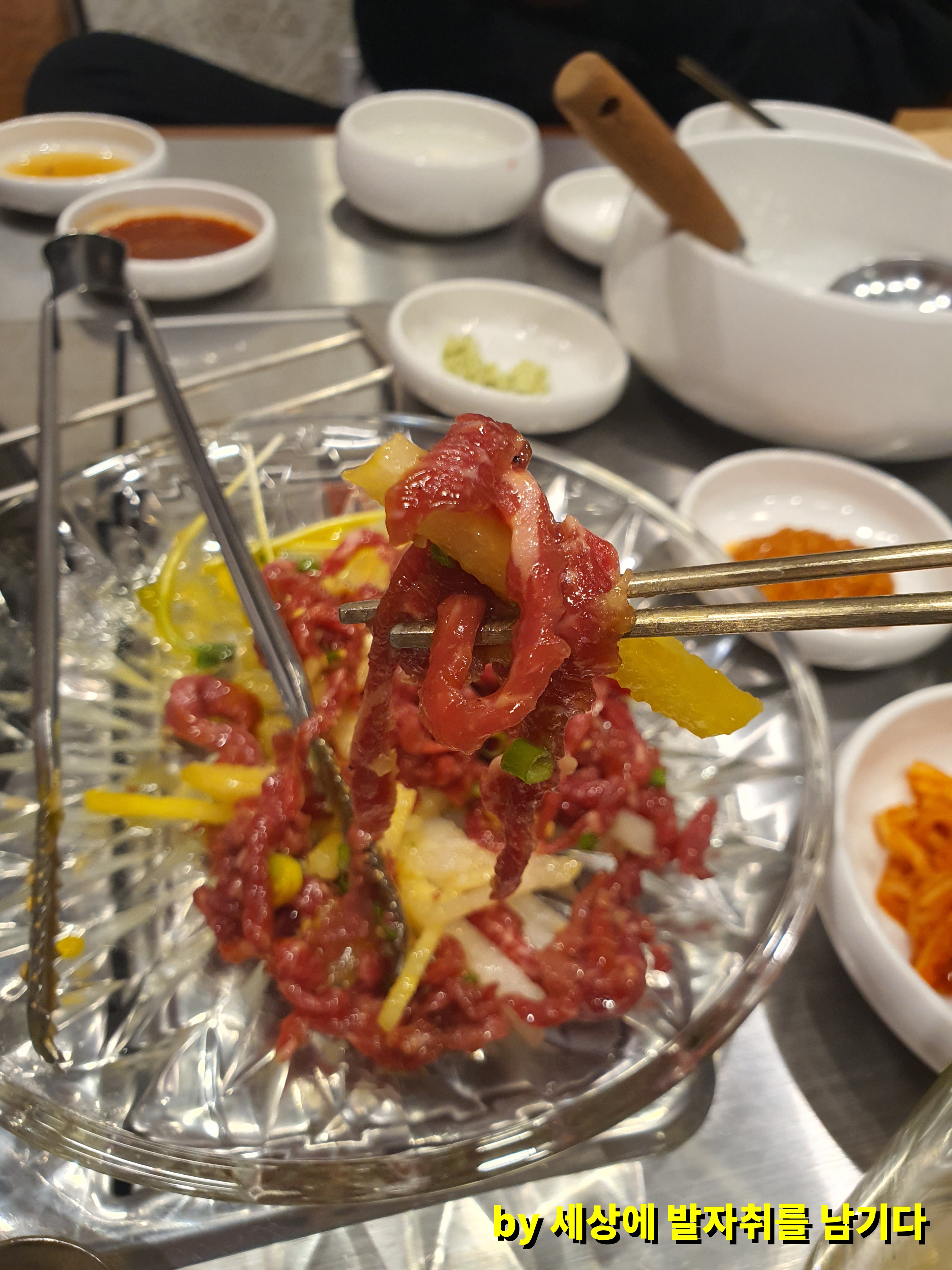 다른 것도 먹어 볼까 하고 육사시미와 육회도 시켰어요.
