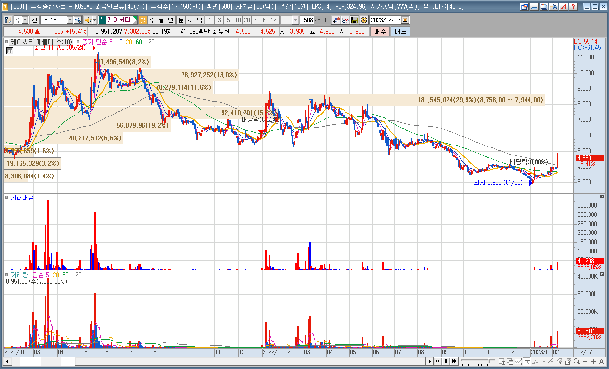 | 7 | 케이씨티 | 15.41% | 디지털화페 | 온라인 마권 발매 연내 허용 소식 |