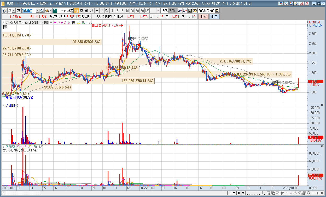 | 8 | 한국전자홀딩스 | 14.52% | 반도체 | 반도체 저점 반등 |