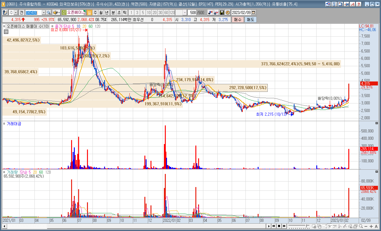 | 3 | 오픈베이스 | 29.97% | 탄소나노튜브 | 중국의 알리바바 '챗GPT'와 같은 형태의 기술 개발 중 |