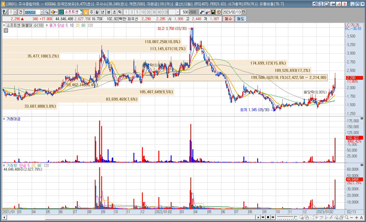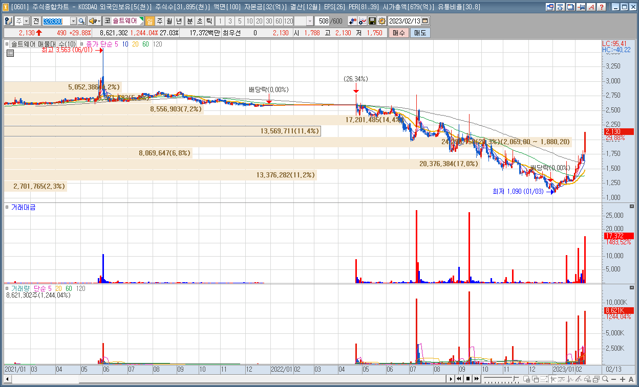 | 2 | 솔트웨어 | 29.88% | 메타버스 | 메타버스 메신저 '본디' 이슈 |