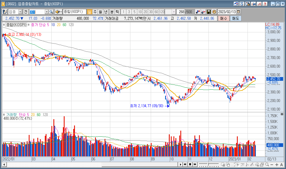 코스피 : 2,452.70 ▼17.03 -0.69%
