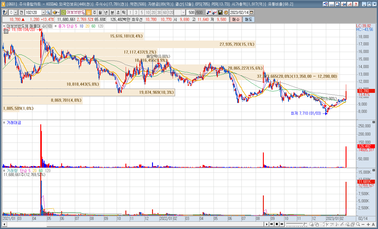 | 4 | 파인테크닉스 | 23.31% | LED | 갤럭시S23 사전예약 109만대 '신기록' 소식 |