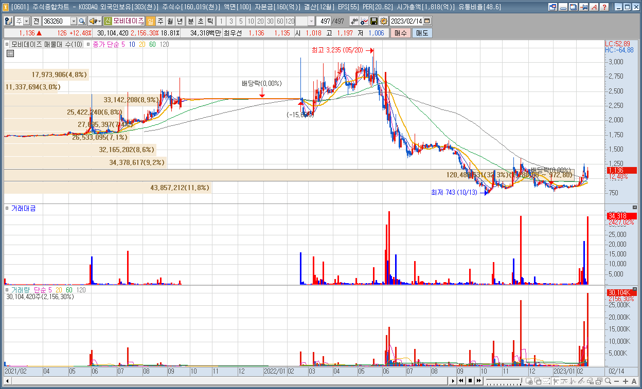| 9 | 모비데이즈 | 12.48% | 광고 | 구글 AI챗봇 '바드' 출시를 앞두고 구글 파트너사 소식 |