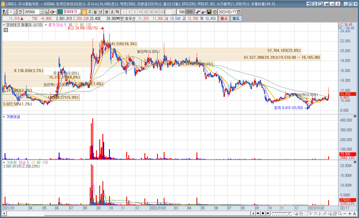 | 7 | 영화테크 | 6.90% | 리튬 | 전기차 수요에 따른 폐배터리 문제 |