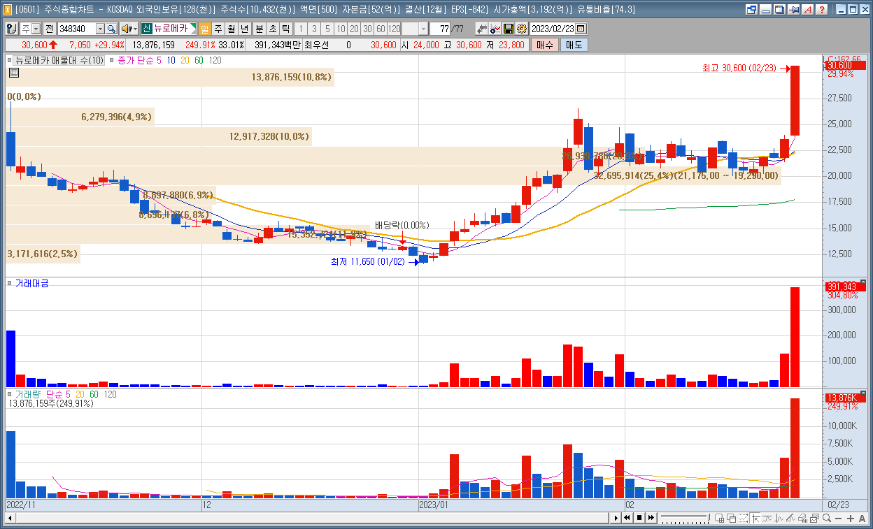 | 7 | 뷰노 | 14.99% | 미용기기 | 2023년 유럽 영상의학회(ECR 2023)에서 '뷰노메드 솔루션'을 선보인다고 발표 |