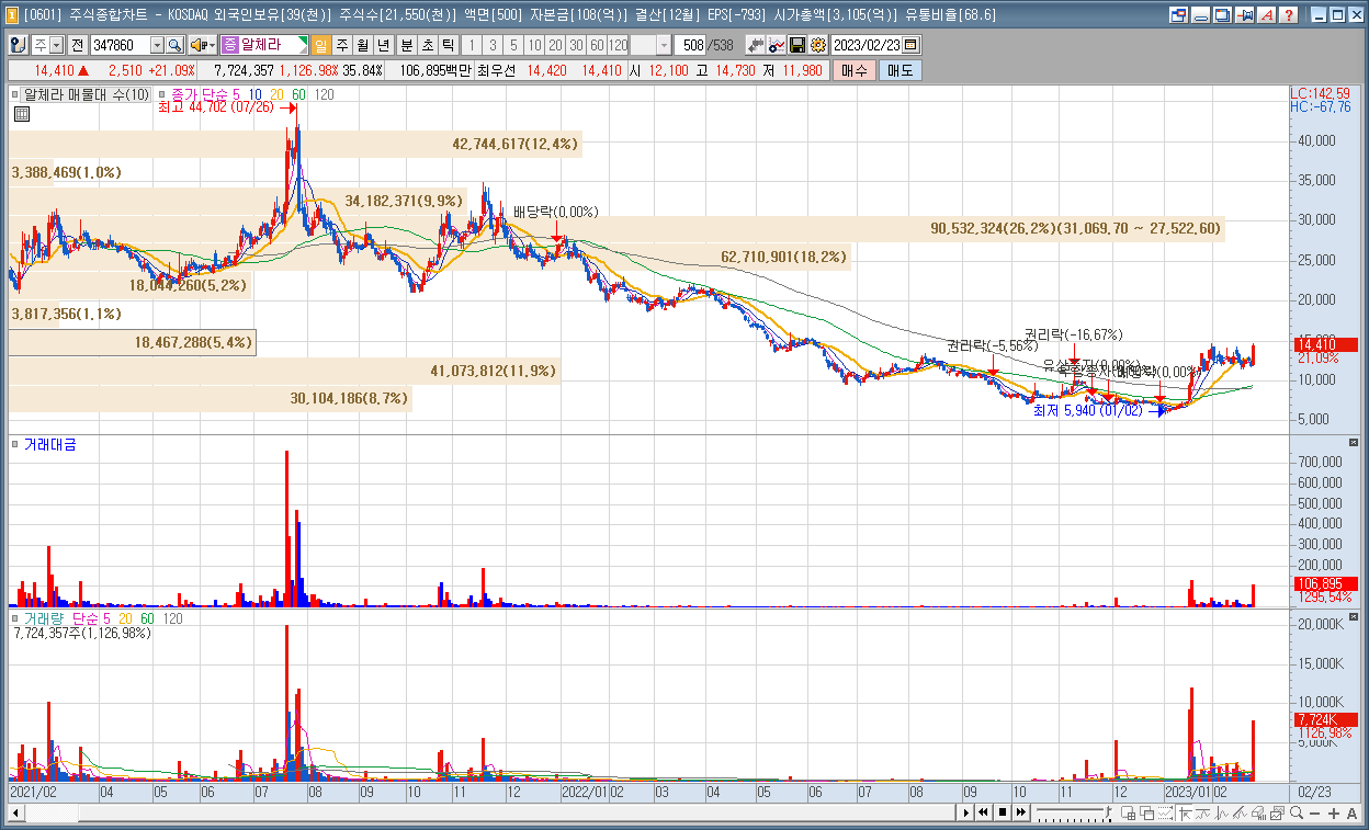 | 4 | 알체라 | 21.09% | AI | 정부, 한국형 챗GPT 개발 지원 계획 발표 |