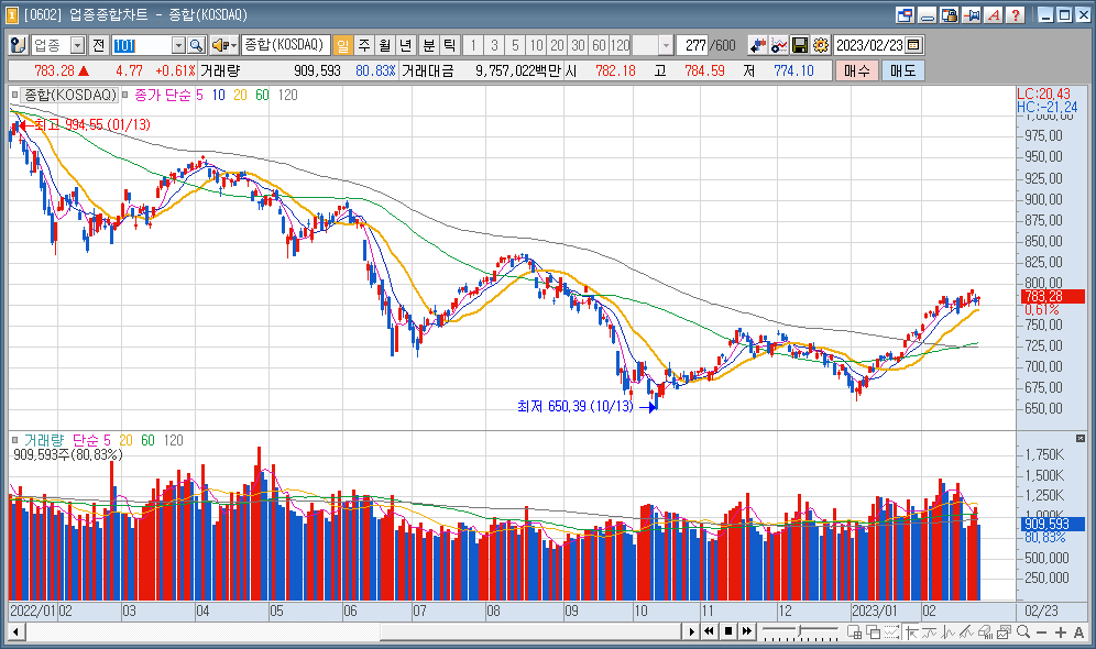 코스닥 : 783.28 ▲4.77 0.61%