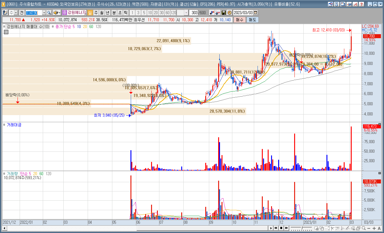| 9 | 강원에너지 | 14.93% | 리튬 | 자회사 강원이솔루션이 양품 수준의 무수수산화리튬 초도품 생산을 완료 소식 |