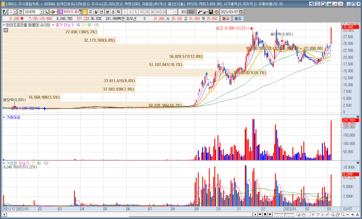 | 2 | 하이드로리튬 | 29.98% | 리튬 | 2차전지 사업 본격화 |