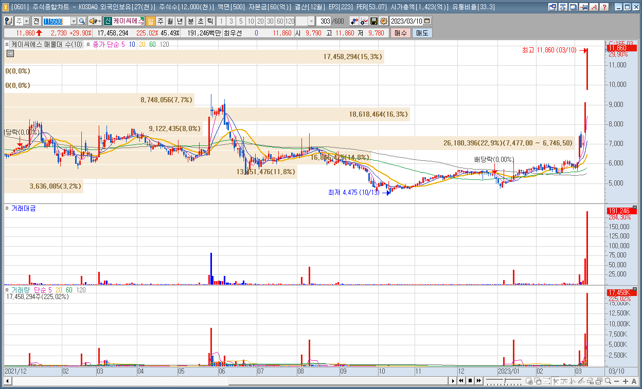 | 3 | 케이씨에스 | 29.90% | 양자암호 | 세계 최초 양자암호통신 상용화 기대 |
