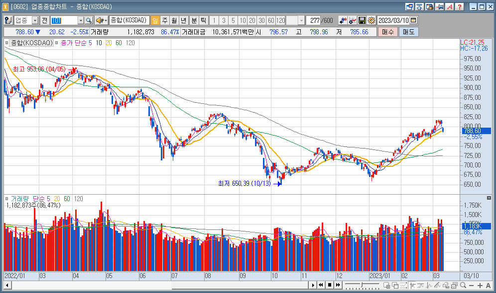 코스닥 : 788.60 ▼20.62 2.55%
